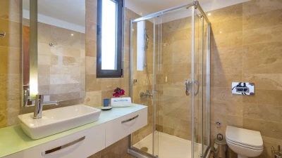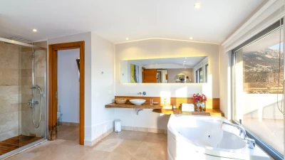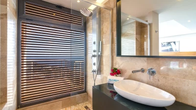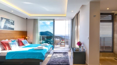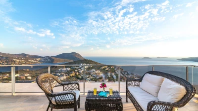 Villa Ayaz is a stunningly contemporary property located within easy reach of sunny Kalkan. Head inside to discover an uber-modern open-plan living, dining and kitchen area, beautifully furnished in neutral tones. Floor-to-ceiling windows lead out onto the terrace, boasting extraordinary seascapes and an abundance of natural light. Upstairs, guests will discover three spacious en suite bedrooms consisting of two doubles and one twin, each opening onto a wonderful balcony. The third floor is home to the double master bedroom suite, which is spacious, modern and kitted with a freestanding Jacuzzi bathtub overlooking the sea views. The villa also features a large gym with a treadmill, exercise bikes and weights.