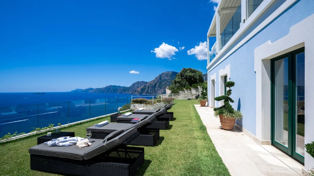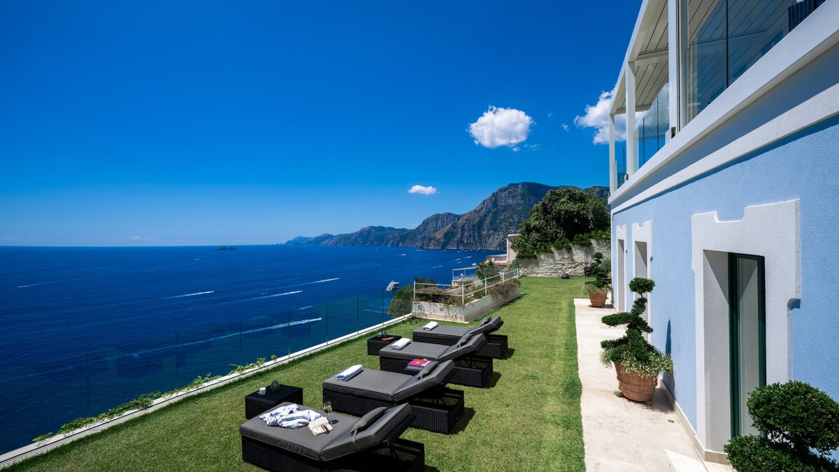 Situated along the famous Amalfi Coast, Villa Bluemarine is a stylish four-bedroom retreat with extraordinary views of the Tyrrhenian Sea, perfect for families or small groups.