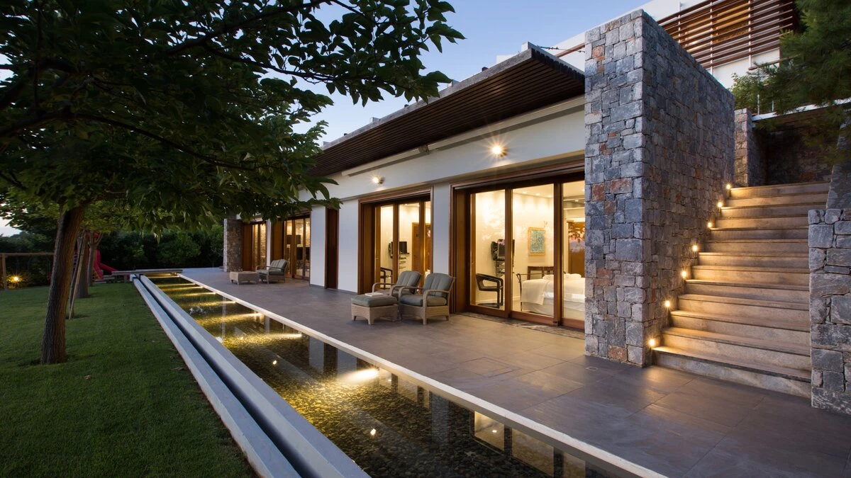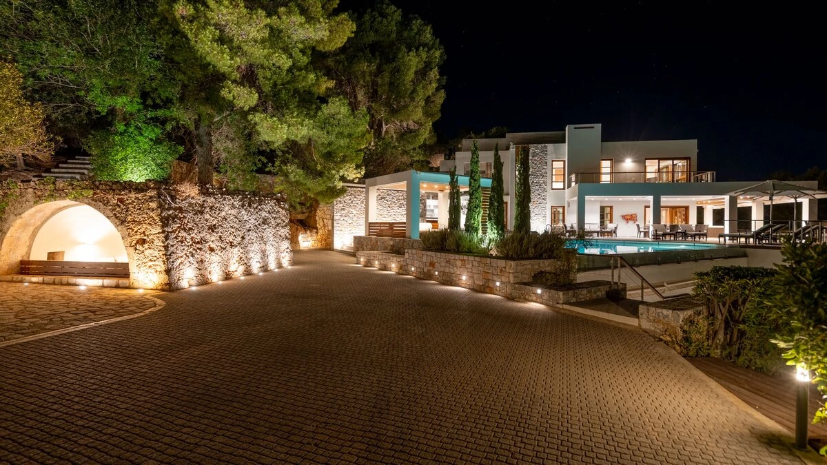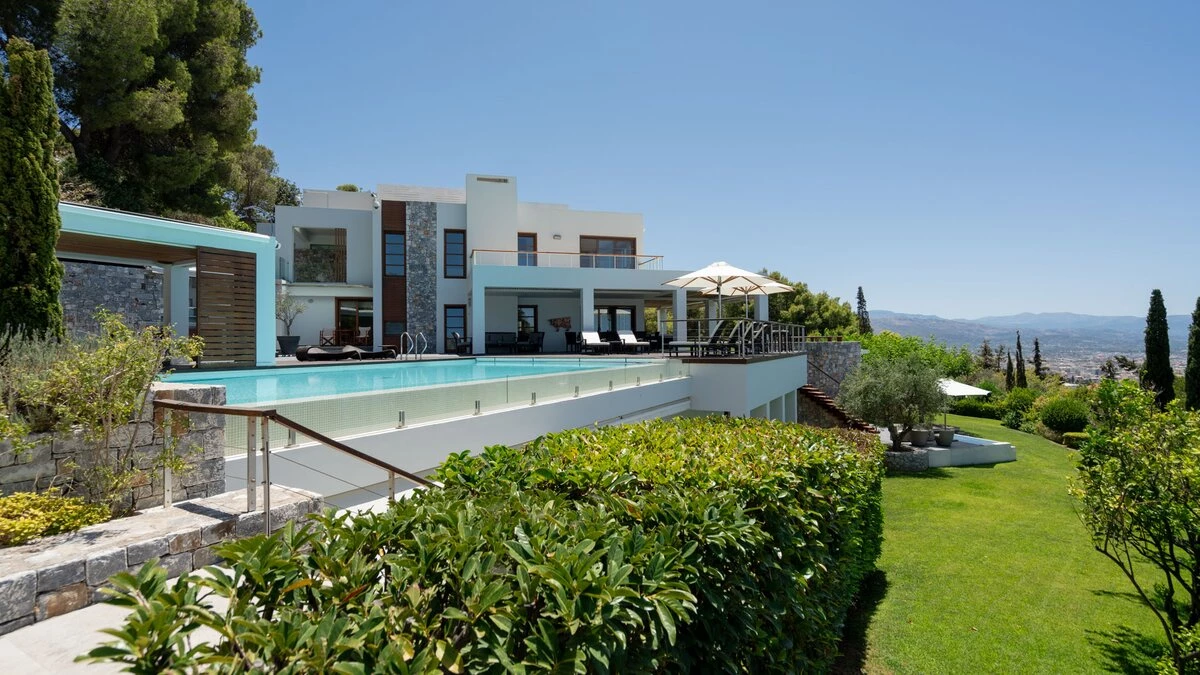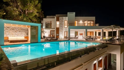 With its own pool, spa and fitness room complementing contemporary comfort, this luxury villa in Cre... -