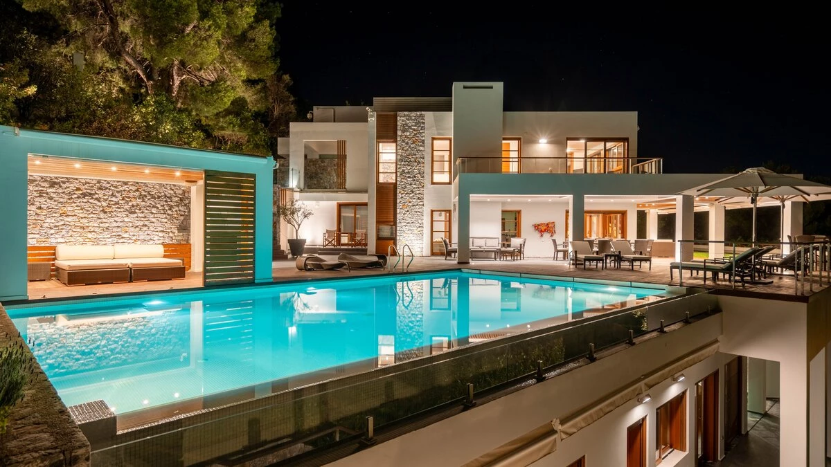 Beautifully designed inside and out, this contemporary villa with breathtaking views over the island... -