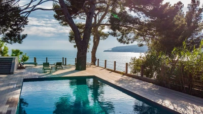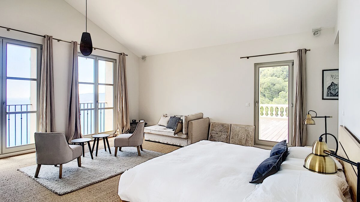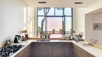 Nestled on the coastline of the glitzy Cote d'Azur, Villa Cassis is a large and stunning property set in an enviable location. This villa is located among beautiful trees, looking out at the ocean with exceptional views. Offering superb comfort and elegance, the property is exquisitely furnished in a tastefully neutral and minimalist design. The ground floor features a two bright and airy living rooms, as well as a dining room and fully-equipped kitchen. There is also a cinema room equipped with a video projector and Apple TV. Guests will also discover a twin bedroom with shower room en suite, complete with a view of the lovely garden. Head up the stairs to discover seven more spacious bedrooms, each designed for a perfectly luxurious night's sleep and several with their own en suite. The second floor features an elegant master bedroom, furnished tastefully with an office, private terrace and en suite bathroom.