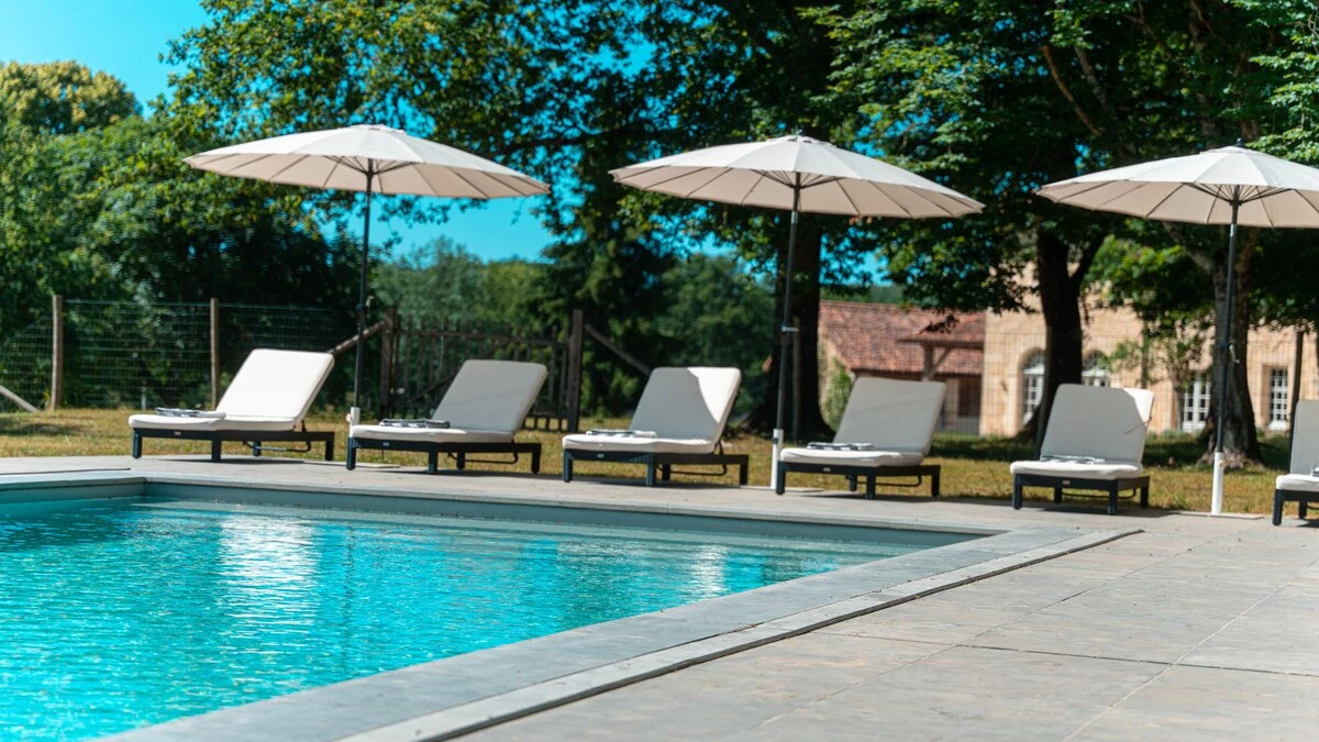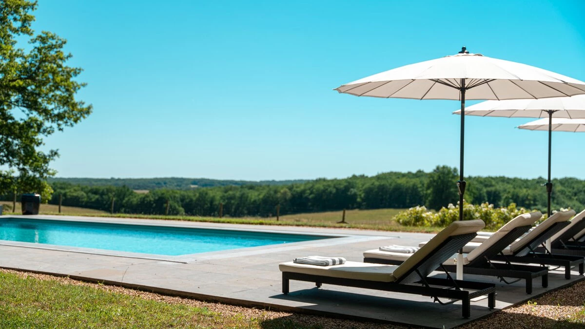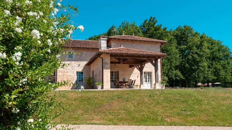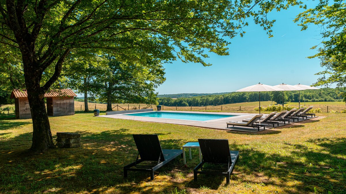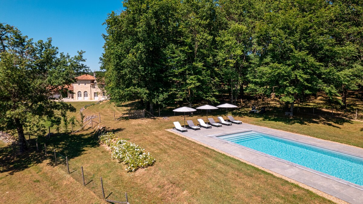 The villa has two terraces for exceptional outdoor living. The covered terrace, with its outdoor kitchen, is the perfect spot for al fresco dinners, The other terrace, facing the woods and large clearing, is great for soaking in the sun and the views. The private pool is ideal for cooling off after an afternoon in the sun. Nearby Brantôme is well-worth a visit, also known as the Venice of Perigord, with the oldest clock tower in France, a lovely market on Fridays, a bakery and restaurants. Amenities can be found just 5km away in Mareuil.