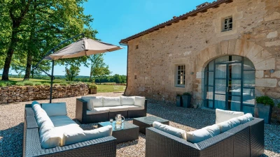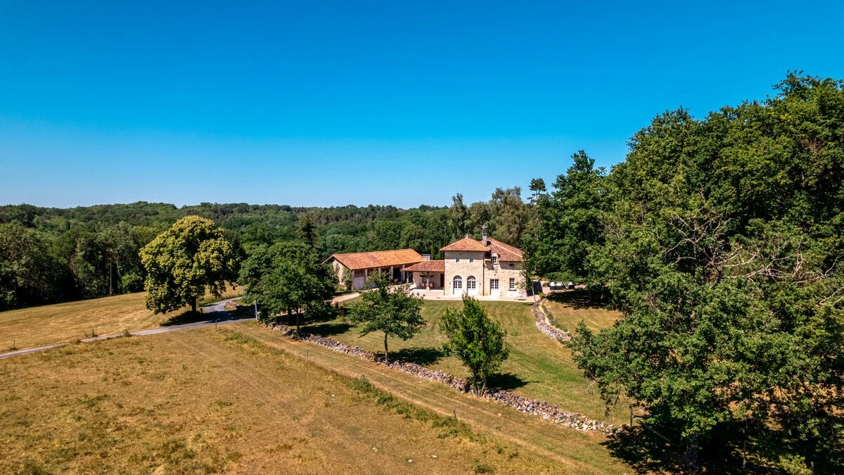 Villa Champêtre is a lovely family villa nestled in the heart of the Périgord Vert. Set on the edge of a small forest, the estate overlooks fields and woodlands. This lovely farmhouse was recently renovated in a timeless style, offering total elegance and comfort. The living room is warm and spacious, with large French windows opening to incredible landscapes that stretch as far as the eye can see. The spacious dining area is bright and airy, while the fully-equipped kitchen perfectly combines modern elements with classic style. Upstairs are four lovely double bedrooms.