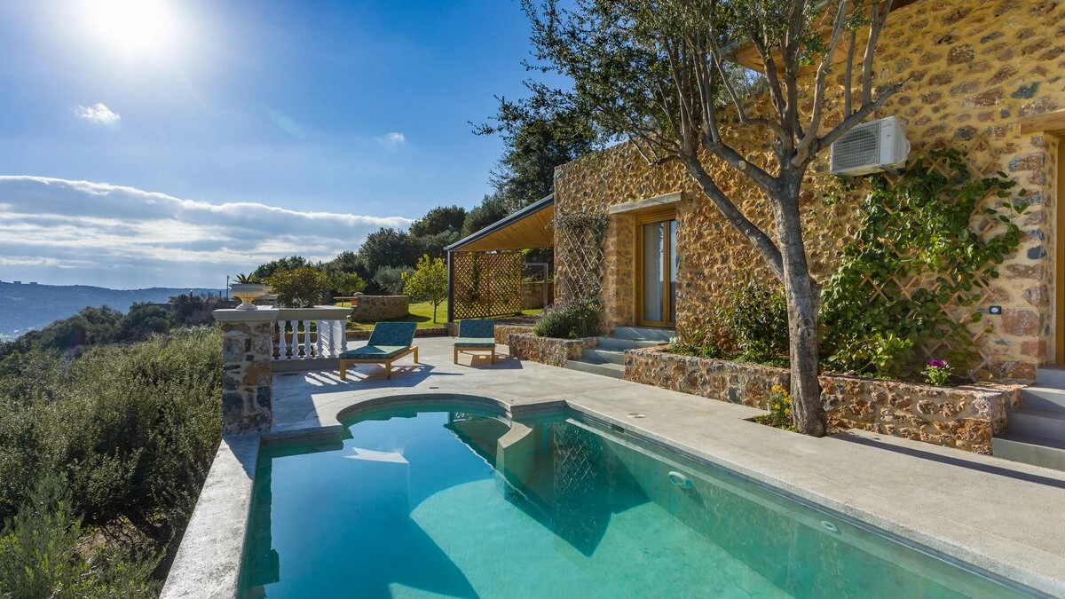 With its own pool, spa and fitness room complementing contemporary comfort, this luxury villa in Cre... -