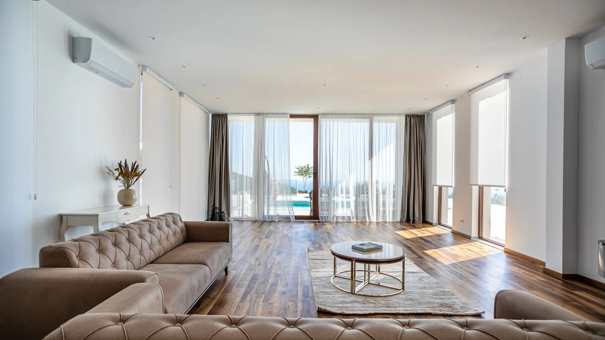 Villa Edela is a striking retreat that blends sleek architectural design with panoramic views of the Adriatic. Spanning 670 m², the villa offers generous open-plan living spaces, a high-spec kitchen, and floor-to-ceiling windows that bathe the interiors in natural light.