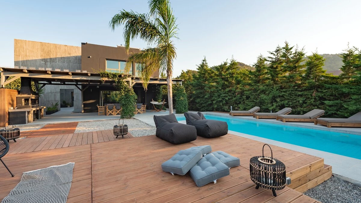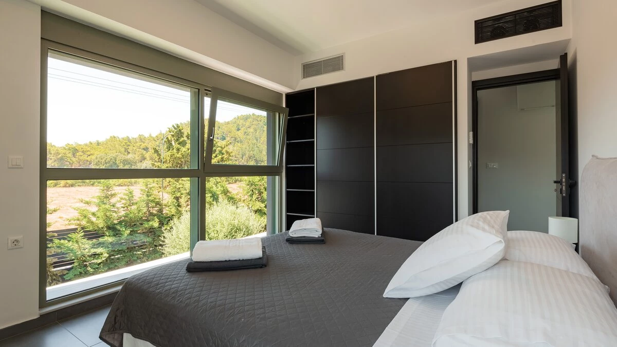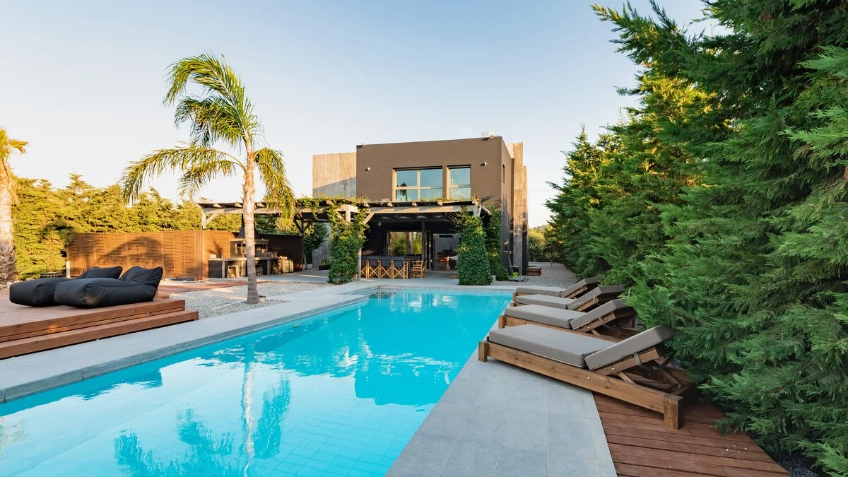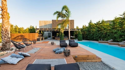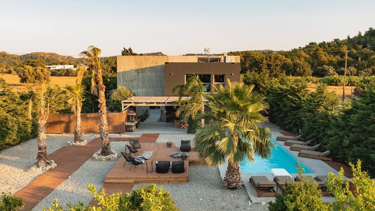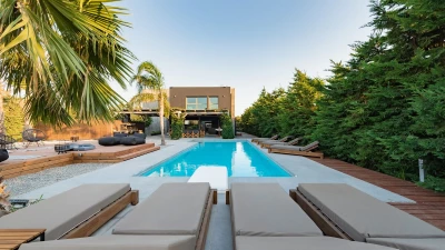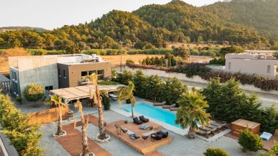 This luxurious property was recently renovated in a striking, contemporary style, just 3km from the sandy-pebbled beach of Ialysos. Villa Elysia consists of six double bedrooms, each sleek and modern, six bathrooms and a fully-equipped open-style kitchen. Ideal for a wellness holiday, the property also boasts a gym and Jacuzzi. Outside, a large outdoor pool is surrounded by lush, spacious gardens, with sun loungers for relaxation and plenty of space for sitting and dining in the sunshine.
