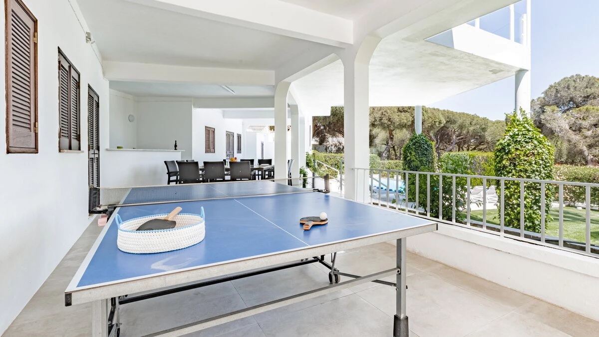 Step outside to discover a beautiful large swimming pool that takes centre stage, surrounded by a meticulously maintained lawn and a generous covered al fresco dining area on the second-floor terrace. The outdoor space is an entertainer's dream, complete with a built-in barbecue, table tennis area, and multiple lounging areas, perfect for enjoying the Algarve’s sunshine. Practical touches like an outdoor shower and convenient bathroom ensure seamless indoor-outdoor living. With Vilamoura beach just 5 kilometres away and the marina's cosmopolitan restaurants within easy reach, Villa Florescer offers the perfect balance of privacy and accessibility.