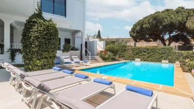 Nestled in the heart of Vilamoura, close to the legendary Old Course golf course, Villa Florescer offers an exceptional retreat for discerning travellers and golf enthusiasts. Located in the vibrant Algarve region, this meticulously designed five-bedroom haven is perfectly positioned to capture the essence of Portuguese coastal living. Ideal for families and groups of friends seeking a harmonious blend of comfort and convenience, the villa sits just 200 metres from world-class golfing, and a mere five-minute drive (3.5 kilometres) from the bustling Vilamoura Marina, and within easy reach of local amenities, restaurants, and pristine beaches.
