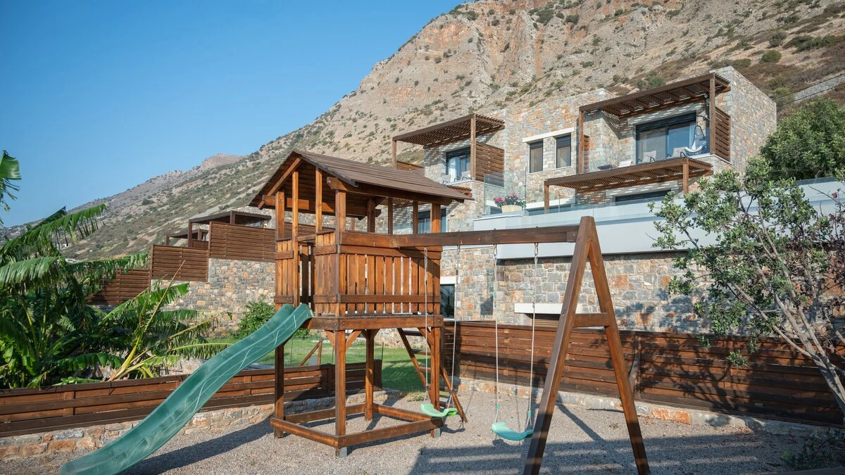 Outside, the highlight of the villa is the expansive pool area with a stunning infinity pool which seems to blur seamlessly into the ocean beyond. There is also an outdoor kitchen and al fresco dining space for leisurely lunches under the Cretan sun, alongside an outdoor play area that is just perfect for the little ones. This ideally located villa is within walking distance of a variety of delicious restaurants in Plaka.