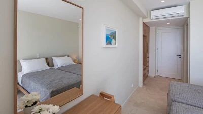 Outside, the villa’s infinity pool is one of the longest pools on the island, at a staggering fifteen metres, and coupled with a large terrace for sun loungers, you’ll always have the perfect spot for both sunbathing and taking in the unique sights of Sparti and beyond. Further expand your horizons walking down to Nidri and taking a short ferry to the nearby island of Meganisi, known for its array of beautiful harbours stretching across the coastline.