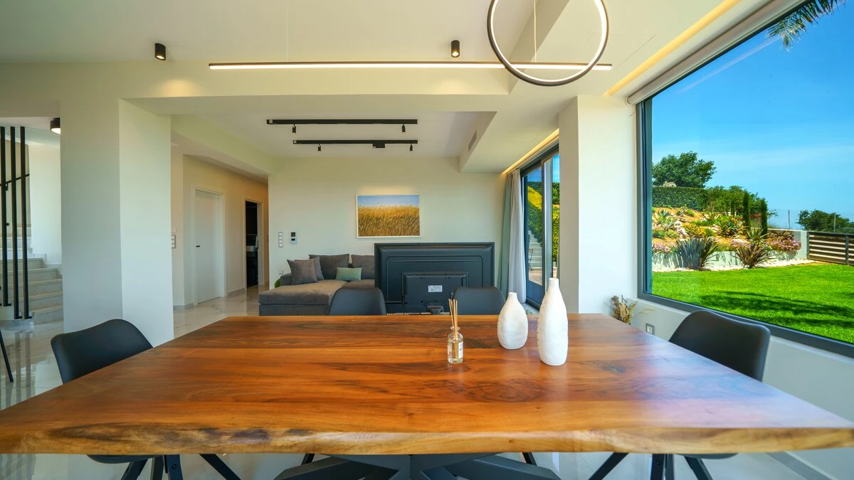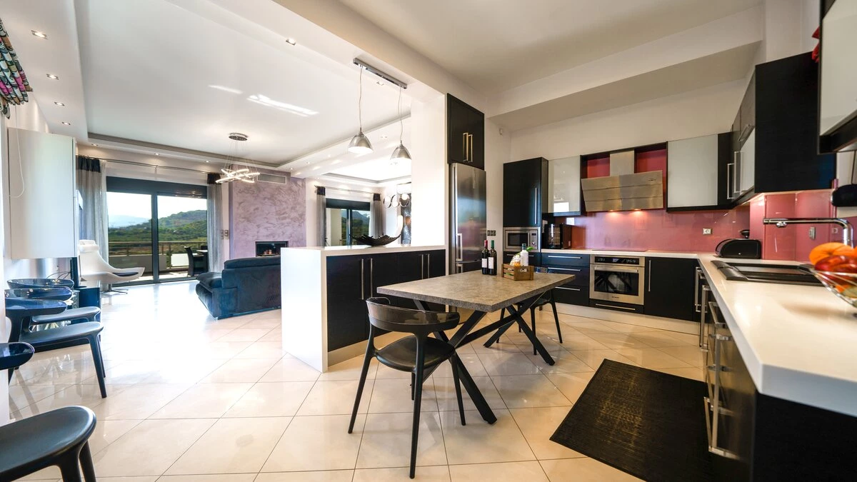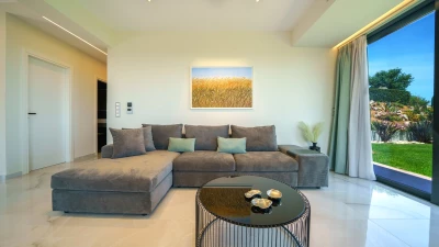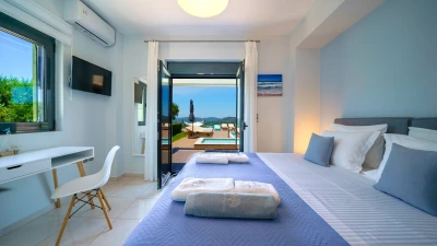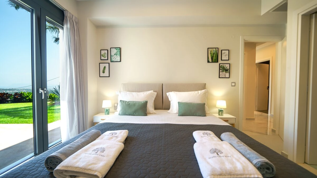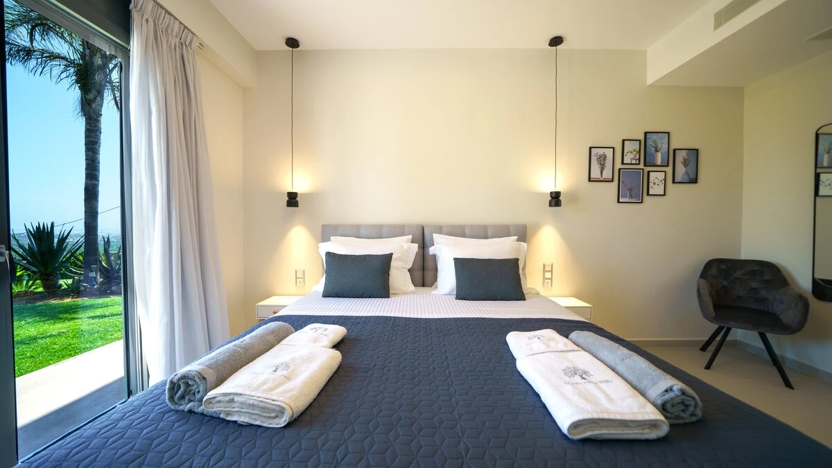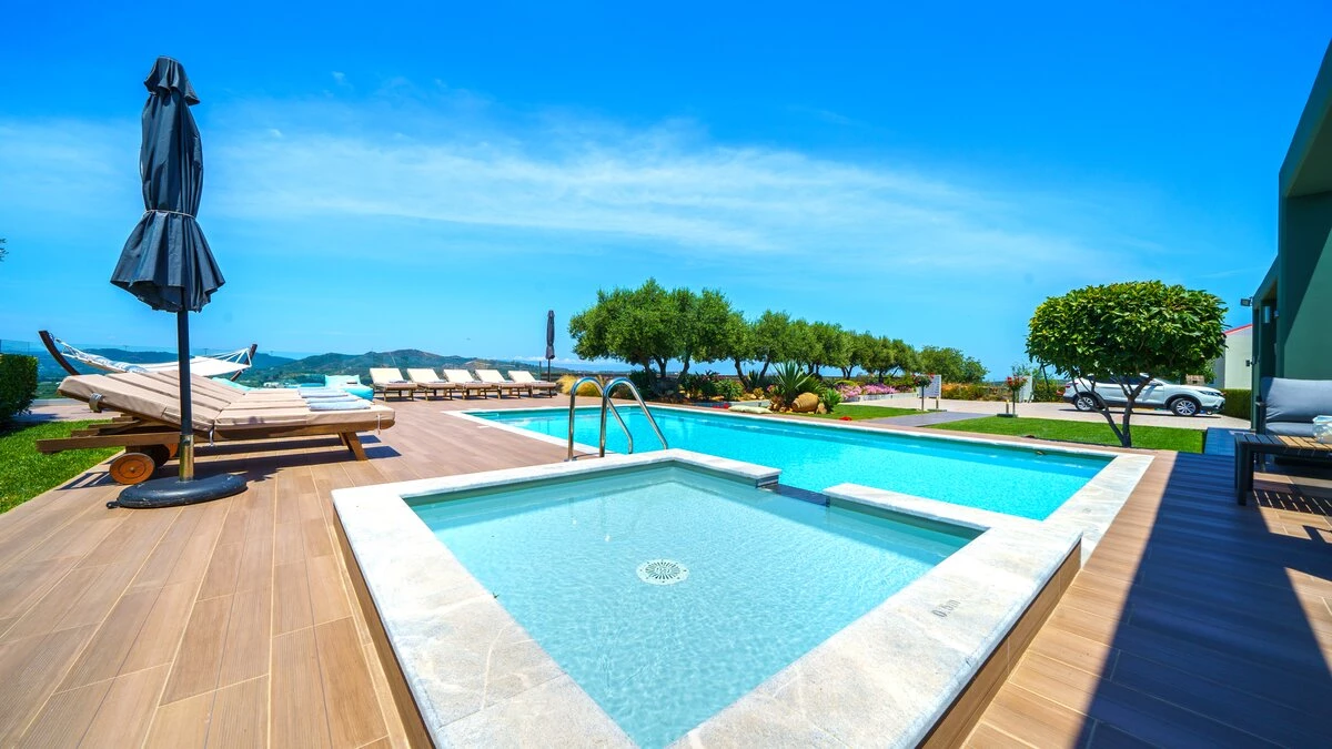 Nestled atop a serene hill in Potistiria, just 5 km from Chania's vibrant city center, Villa Danai  offers a stylish retreat surrounded by ancient olive groves. This expansive villa seamlessly blends traditional Cretan charm with modern elegance, providing an idyllic setting for families or groups seeking both relaxation and proximity to Crete's renowned attractions. With panoramic views of the sea, mountains, and countryside, the villa promises an unforgettable Mediterranean escape.