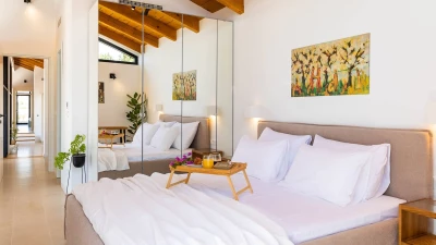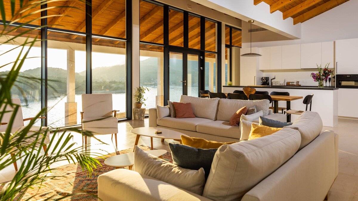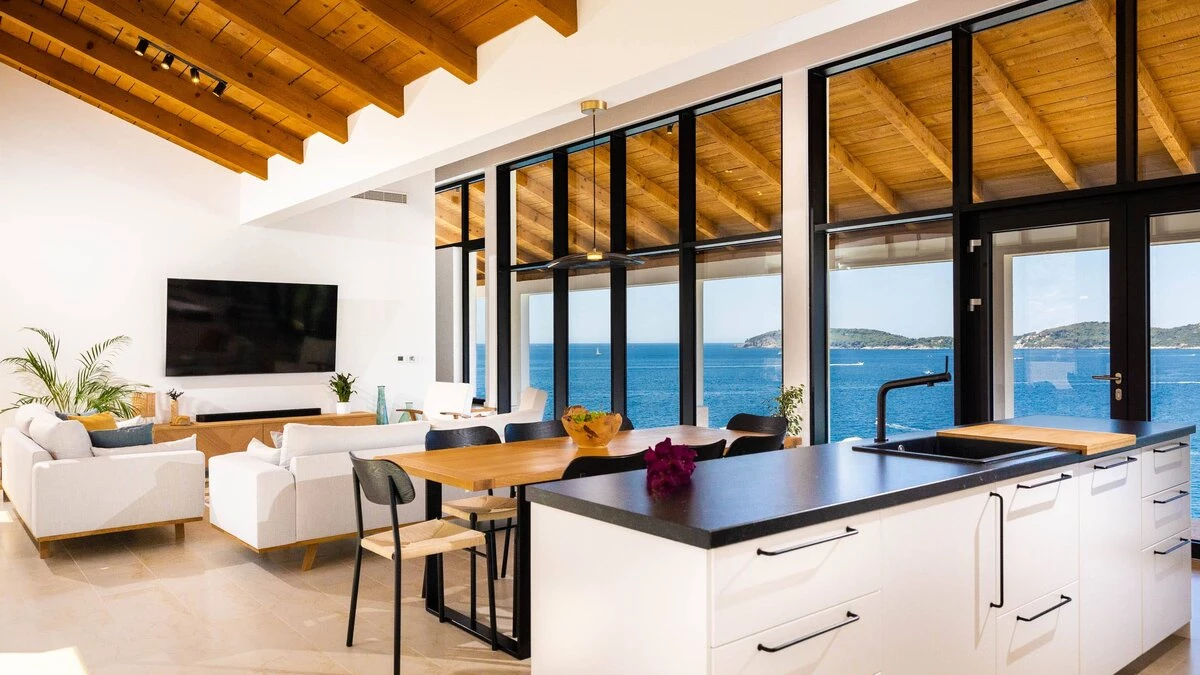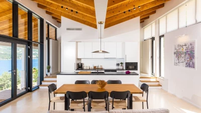 Located just around the corner from Dubrovnik, with glorious views over Zaton Bay and private access to the beach. Sleek and modern, the villa was initially designed by artist Milovan Stanić, and has been recently finished by his family. Perhaps the most notable part of the property is the museum situated in the basement, displaying the artist's finest works. Inside the house is airy and open, with windows facing the sea for unobstructed views. The decor is natural and minimal, with wood-beamed ceilings and comfortable, contemporary furnishings. The outdoor areas are equally impressive, with a lovely infinity pool, covered seating areas, dining space and balconies which can be accessed from each of the four bedrooms.