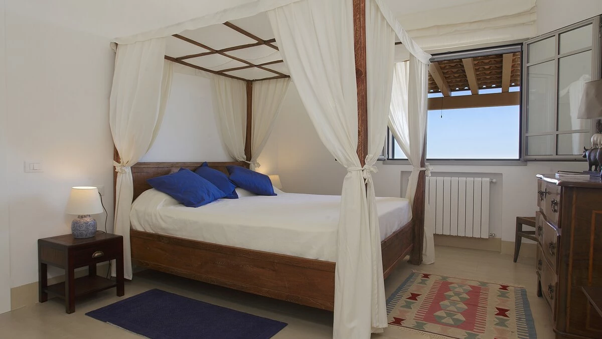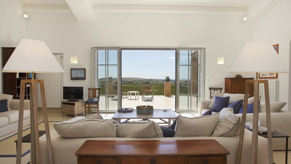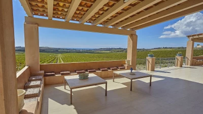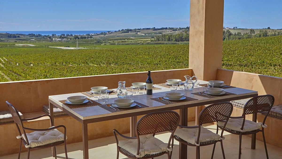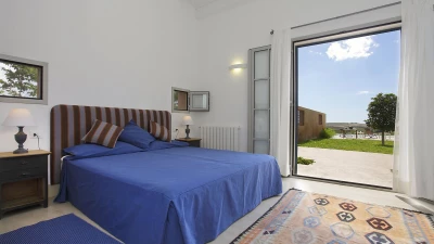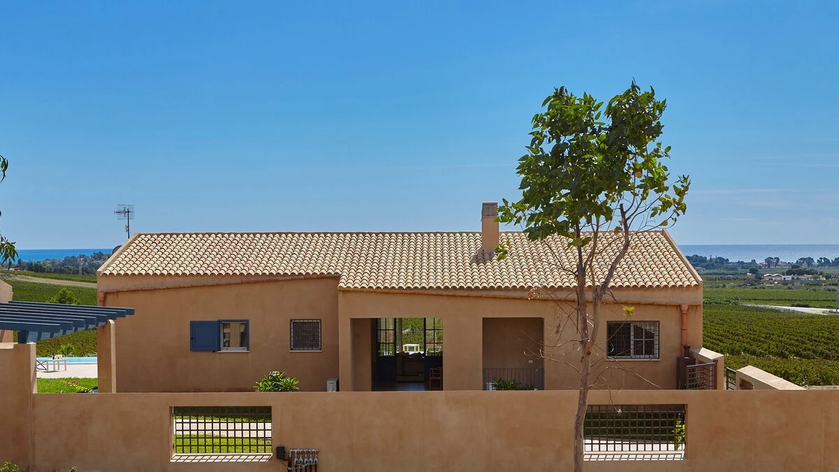 This, in turn, leads into the smart and modern kitchen, and all three rooms open out to wrap-around terraces with covered areas furnished for al fresco dining and relaxing. Two bedrooms in the main house include the four-poster master suite, and there are two rooms in the annexe, each flexibly furnished for twin or double use, and both with French doors to a lawned area just behind the swimming pool, where deck chairs furnish a sizeable sun terrace with scenic views to the sea. This is where some of Sicily's loveliest beaches and clearest waters can be found and some of the island's finest wineries - just a few hundred metres from the property are the vineyards of the famous Planeta winery and at 200metres their renowned La Foresteria Planeta restaurant.
