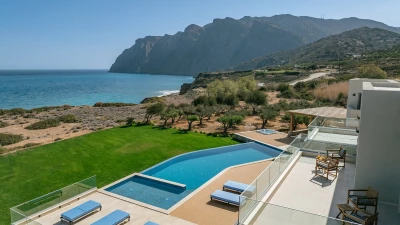 A serene seafront sanctuary with sweeping sea views, contemporary Cretan charm, generous outdoor living and a spectacular infinity pool, perfect for families seeking privacy, comfort and tranquility.