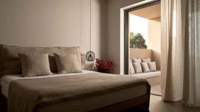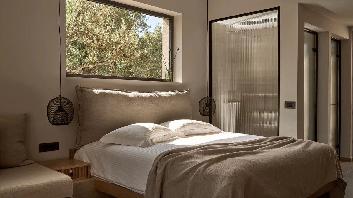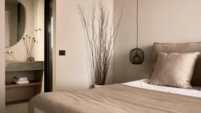 Villa Kallix is sleek and chic, the perfect venue for those seeking modern luxury and total serenity. The villa is defined throughout by its minimal design, which utilises earthly hues and wood for an essence of natural opulence. Inside, the property features three bedrooms with en suite bathrooms, each beautifully decorated in a calm and contemporary style. One of the bedrooms also features an external private bathtub. The living area is lavish yet minimal, with a fully-equipped kitchen and dining space. The large, panoramic windows offer endless views outside the villa.