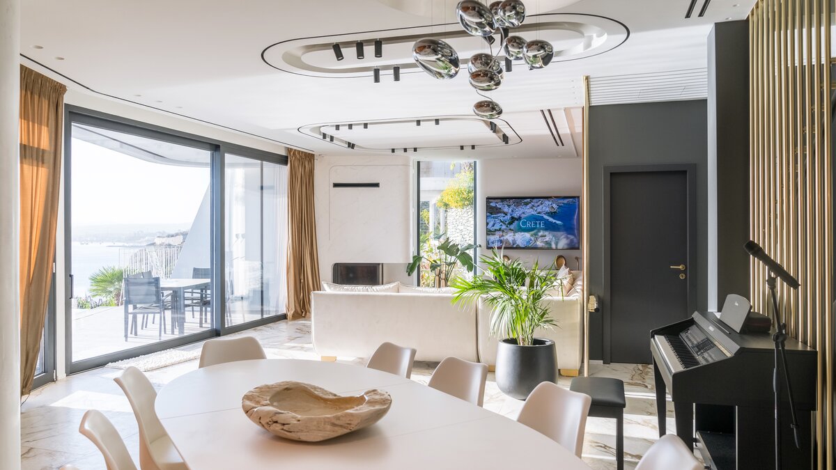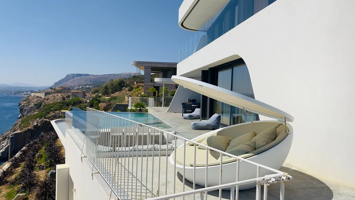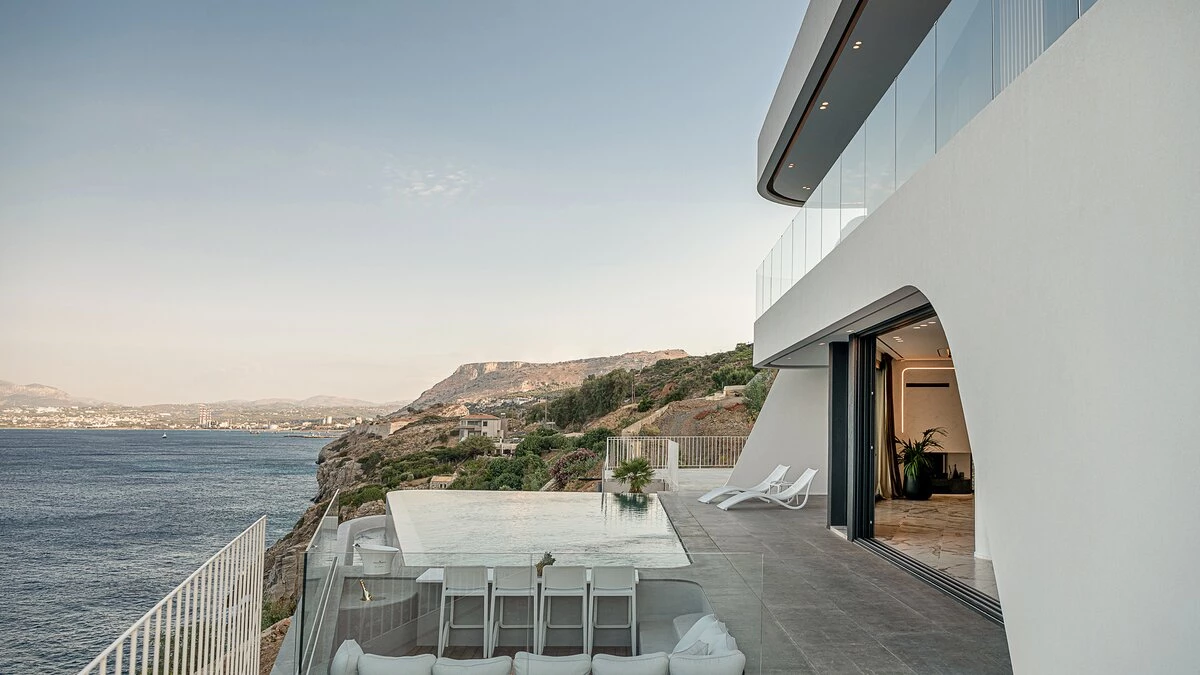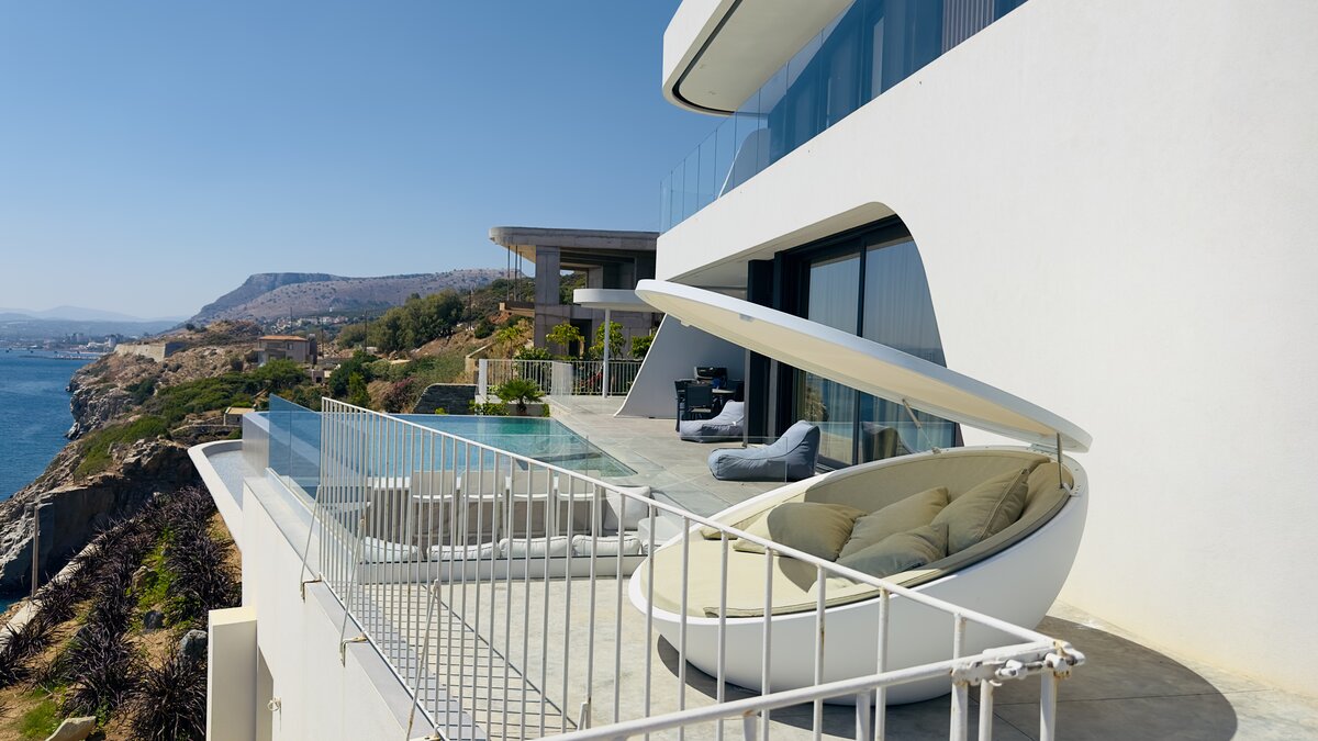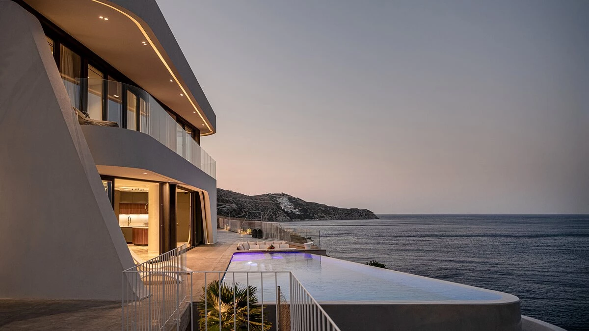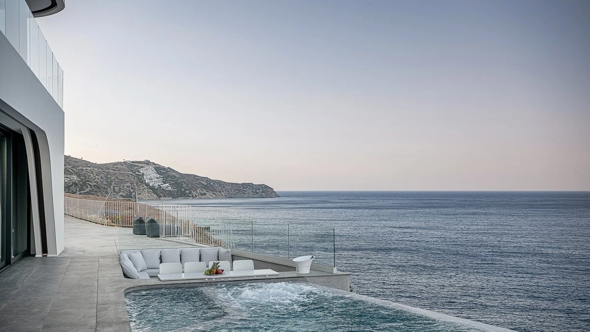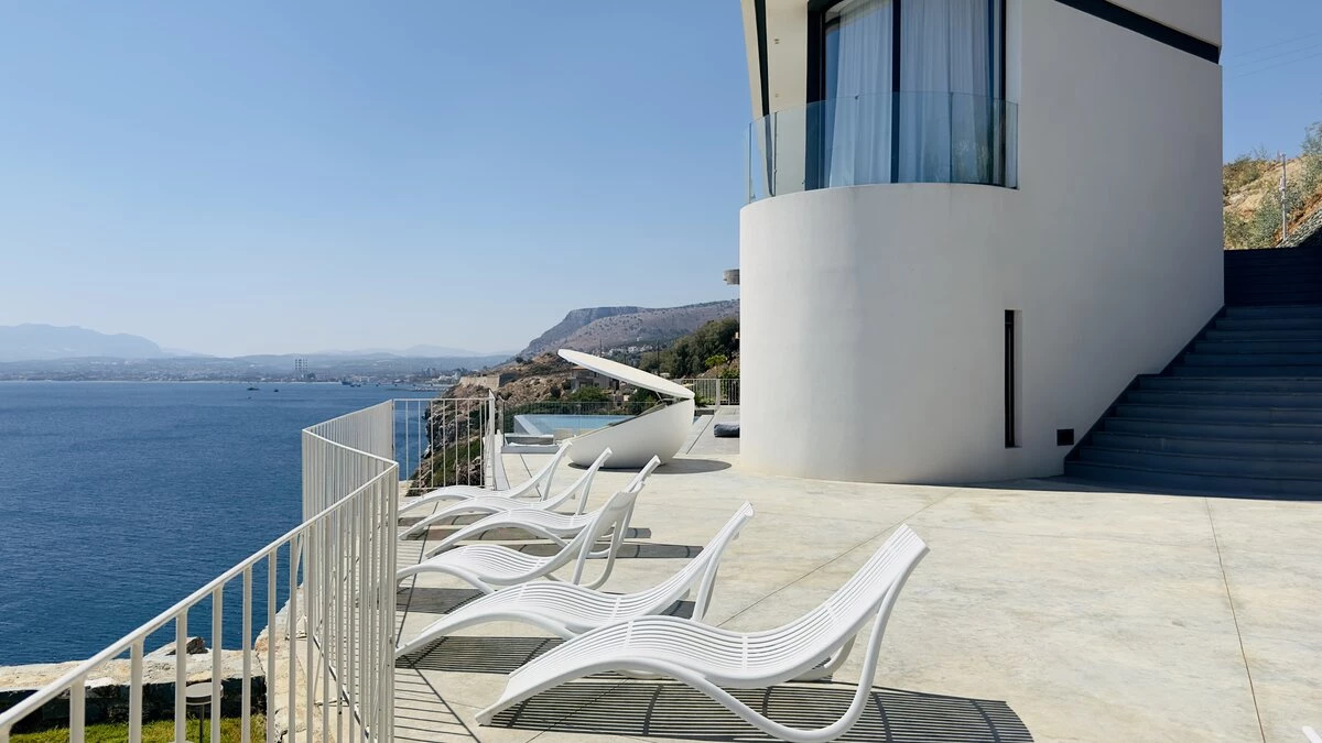 Villa Kriti is a striking six‑bedroom villa poised above the sea, offering private beach access, extraordinary views, and a privileged setting just 20 minutes from Heraklion Airport. Designed with a refined simplicity, the villa celebrates space, light, and uninterrupted coastal panoramas.