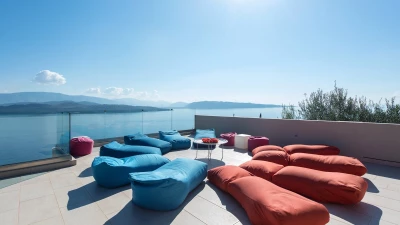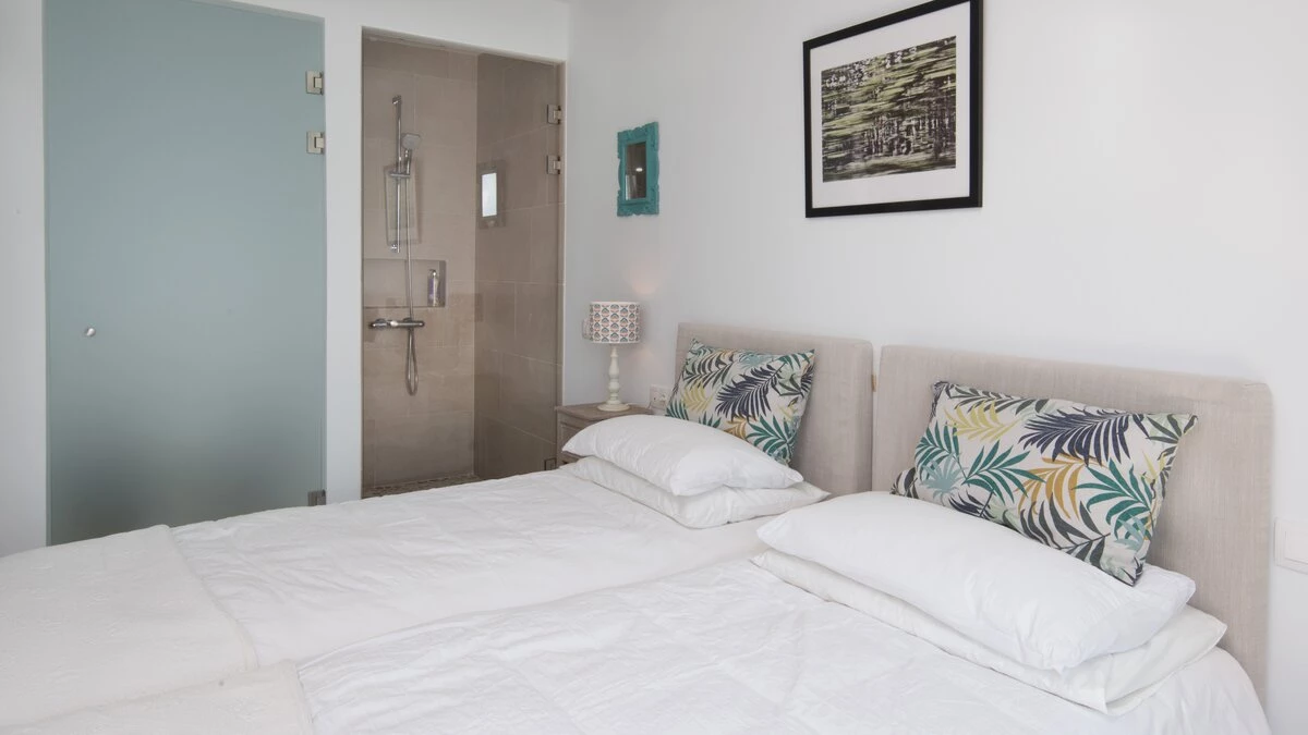 With fabulous views of the sea and mainland mountains from its top floor balcony, this is a romantic... -