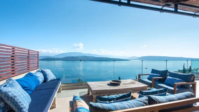 A wonderfully comfortable luxury villa in Lefkada, with magnificent sea views from its secluded seaf... -