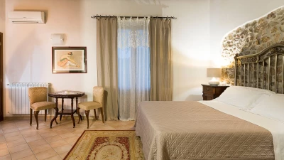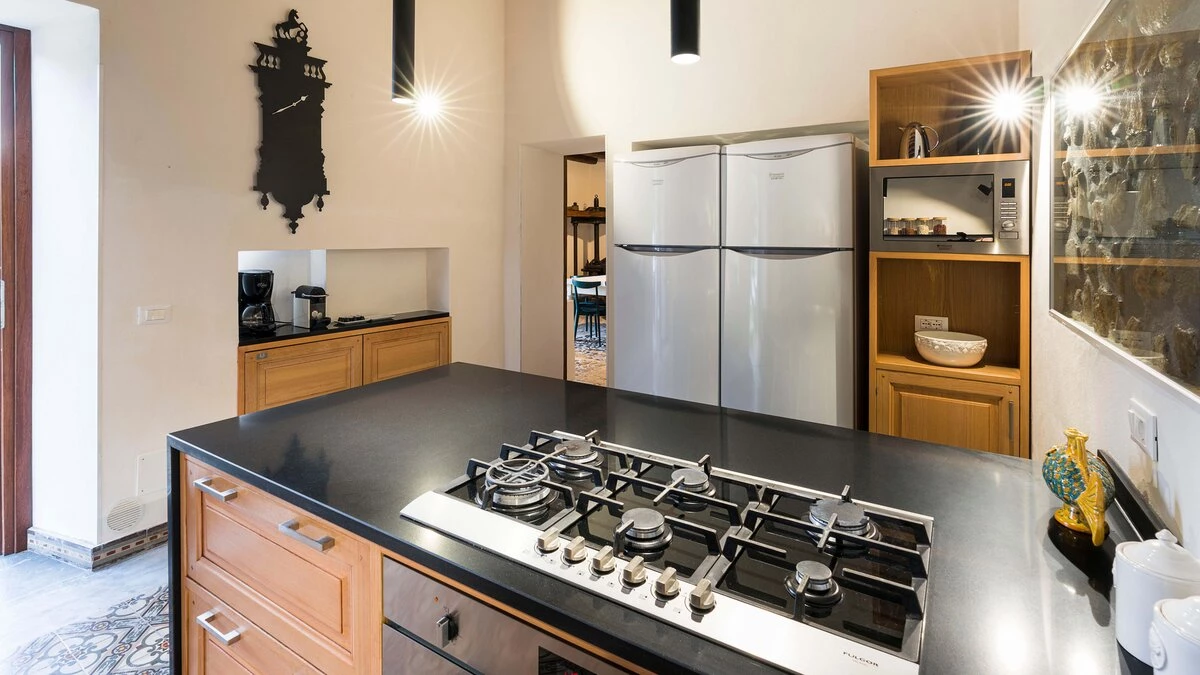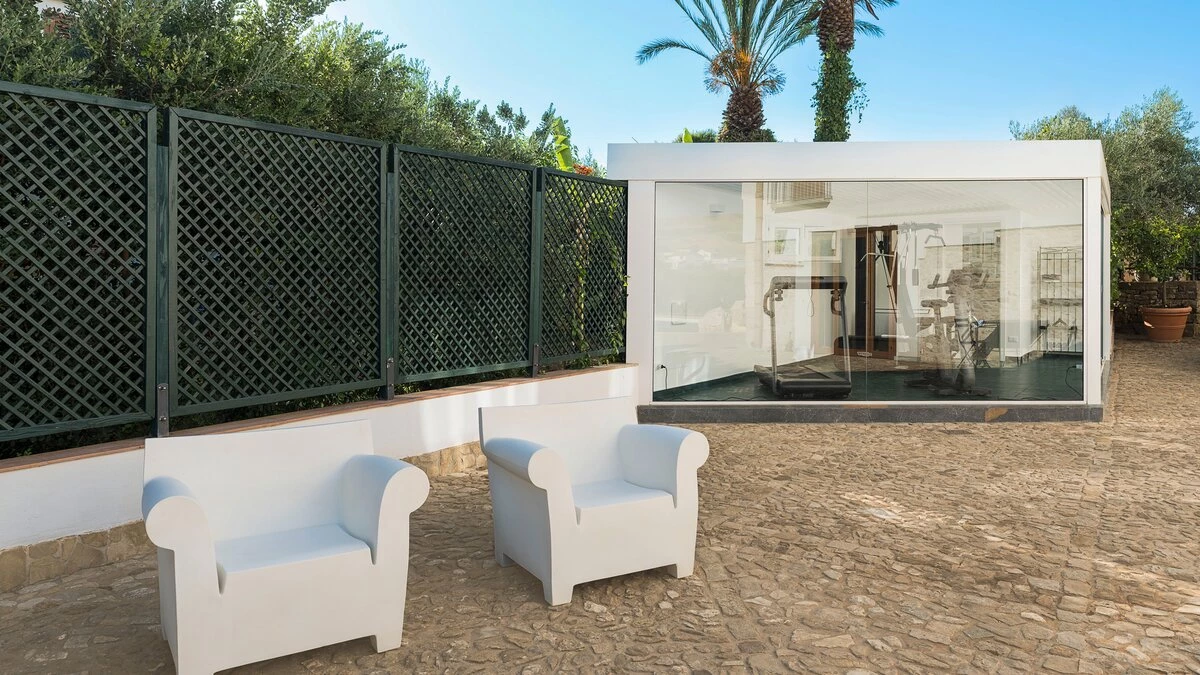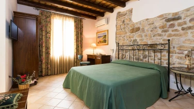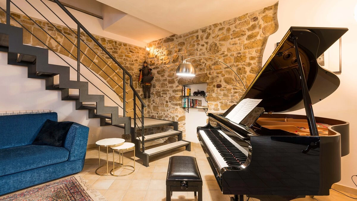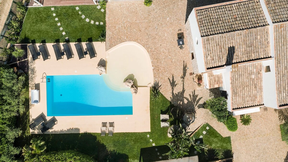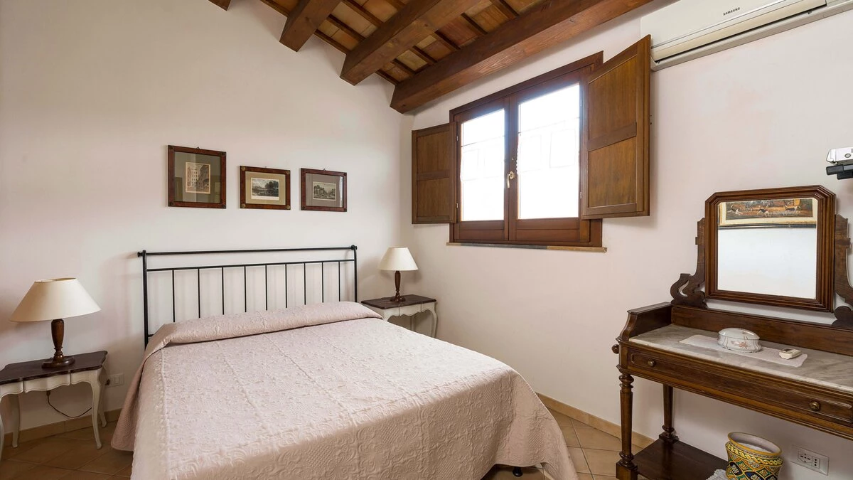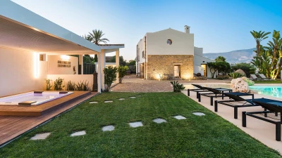 A rambling house with raftered ceilings and exposed stone walls, La Costa looks out to rural views which bring a literal meaning to the term ‘picture windows’. Wonderfully well planned for big get-togethers, the villa has eight air-conditioned bedrooms, beautifully furnished in rich wood and local linens; a cool white dining room with contemporary furniture on an old stone floor; and a very spacious sitting room, divided into two areas and designed in stylish monochrome, with Sicilian ceramics adding earthy, arty touches.A wine cellar, eight TV’s, and a baby grand piano are thoughtful additions within the house, while colour-washed exterior walls add a warm glow to its delightful cobbled courtyard terraces, which are home to a sunny seating area and poolside dining gazebo. Framed by big boulders, and with a wade-in section and wide stone steps into the water, the twelve metre swimming pool is irresistibly tempting. Well placed for sightseeing, the villa is just 1km from amenities in the little hill village of Buseto Palizzolo, and 15km from Scopello’s sandy beach.