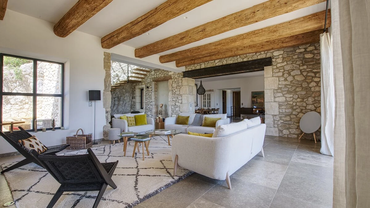 Inside this expansive 380m² villa, six beautifully designed bedrooms each feature their own bathroom or shower room, offering comfort and privacy for up to 12 guests. Expansive, sunlit living areas, including a stylish kitchen, inviting dining room, and multiple lounges, create the perfect setting for shared meals, leisurely afternoons, or quiet moments of reflection.