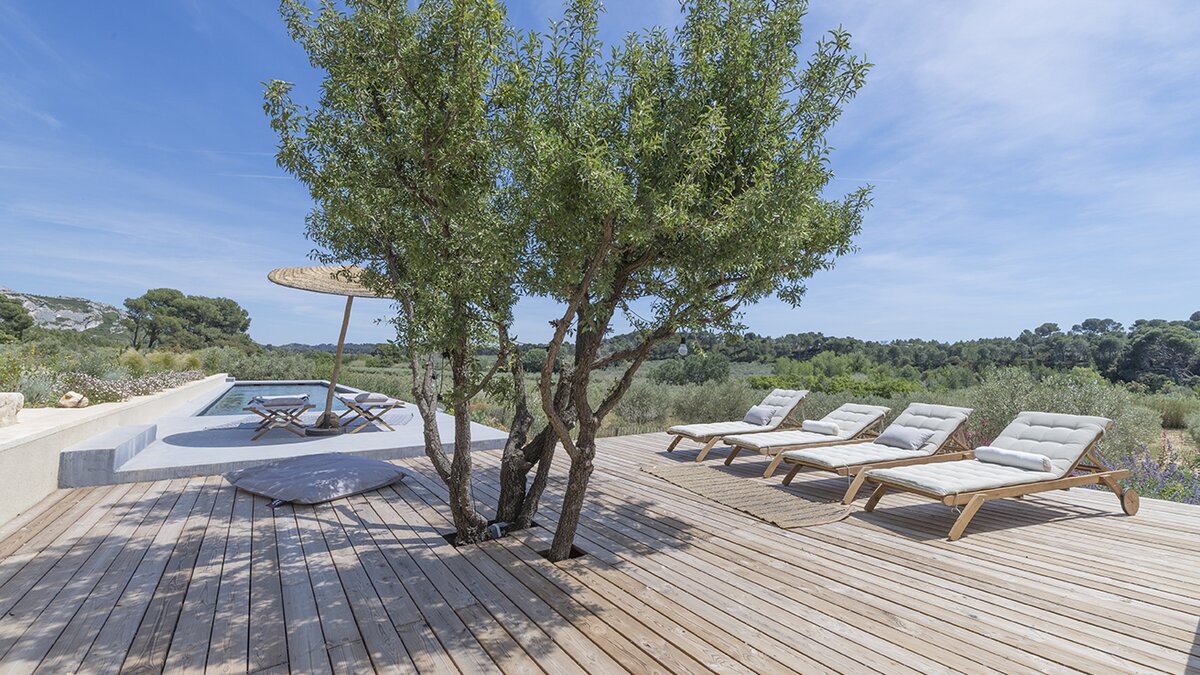 Situated on 1.8 acres of land with breathtaking views of the Alpilles, sits Mas des Sables, a contem... -