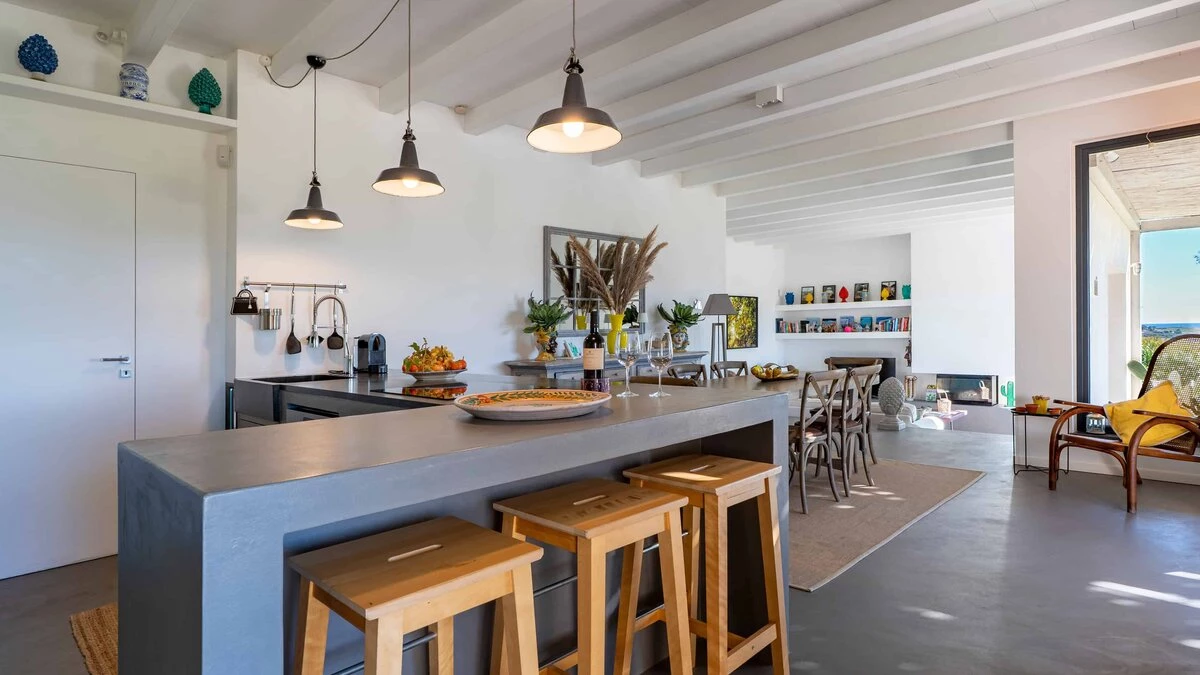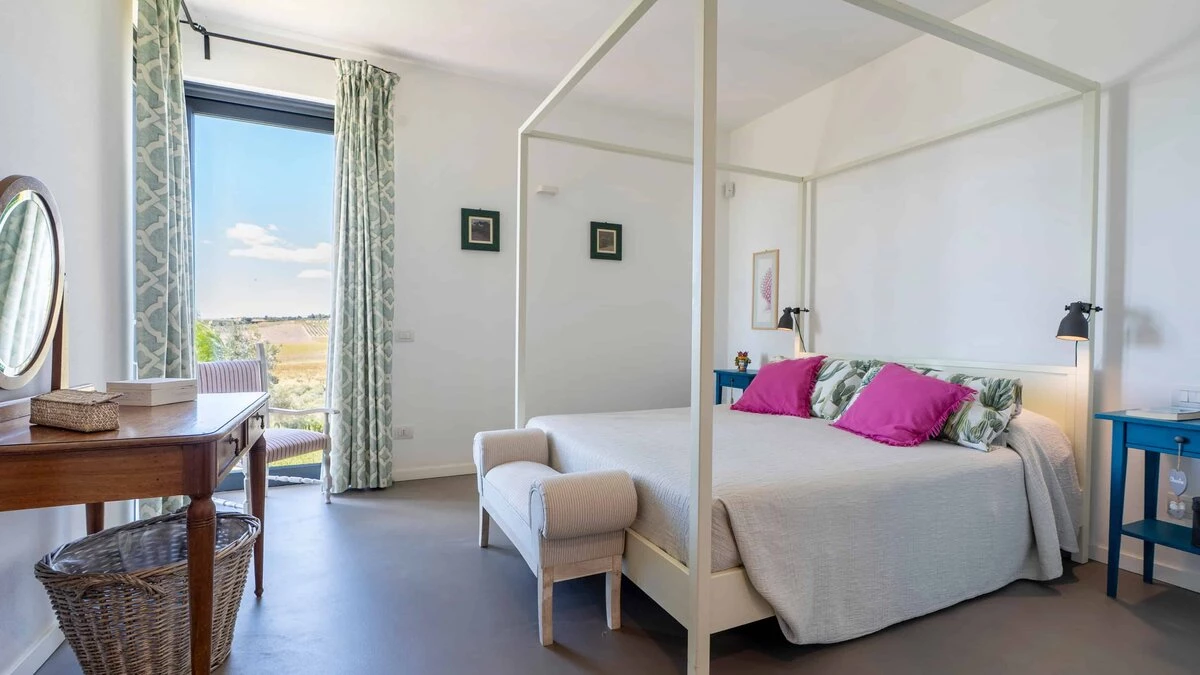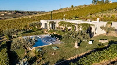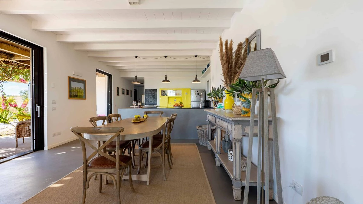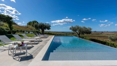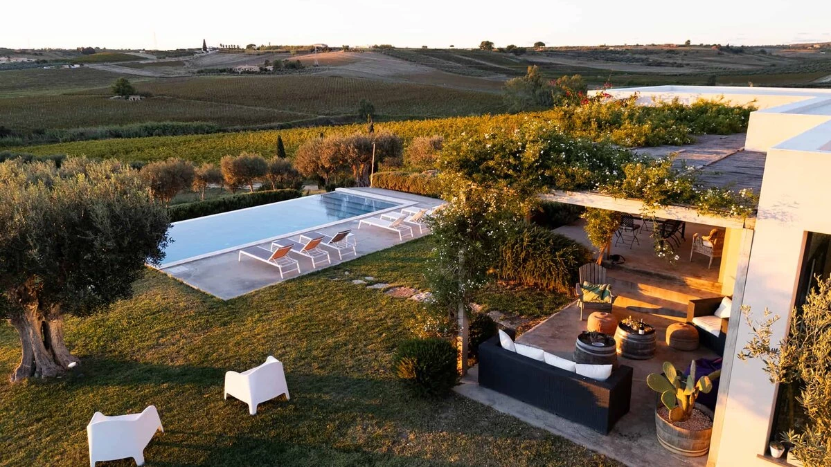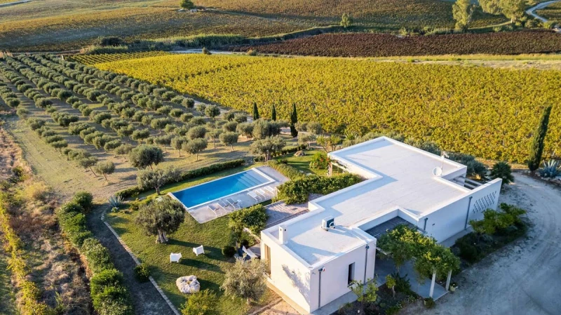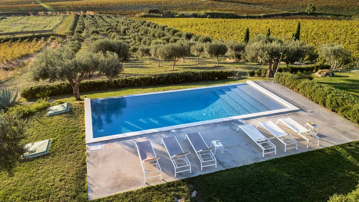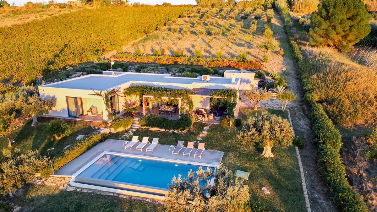 Surrounded by long rows of vineyards and olive trees, Villa La Solette enjoys a distinctive position in the Menfi countryside, offering a refined blend of contemporary comfort and classic Mediterranean style.