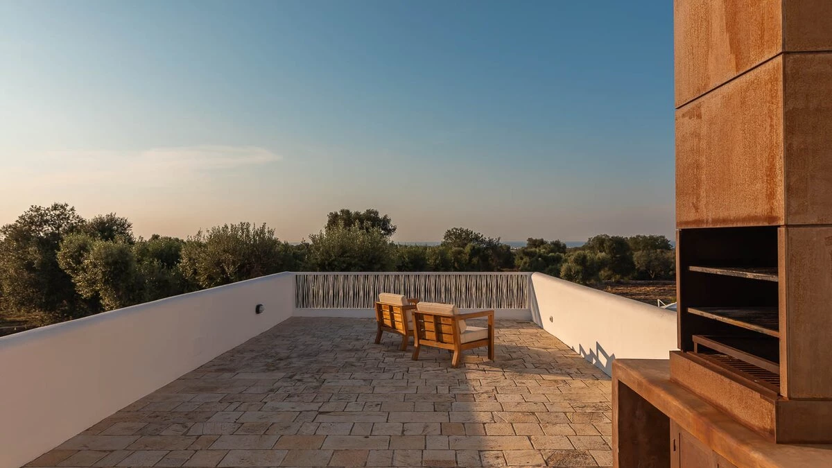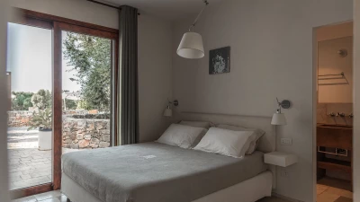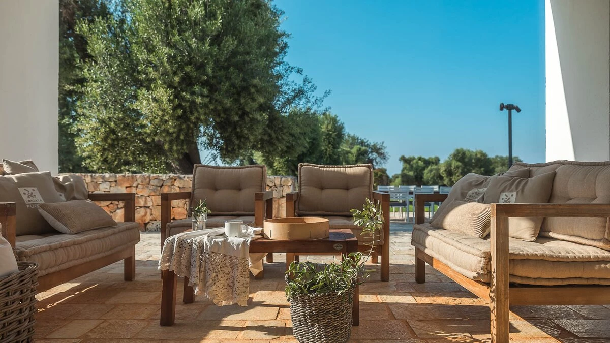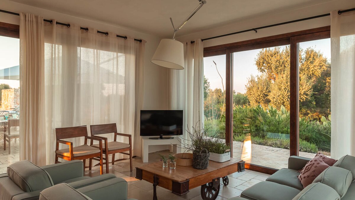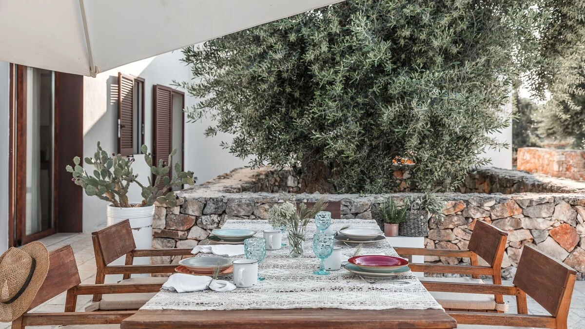 Outside, the gardens are bordered by charming stone walls and olive trees. The private pool is surrounded by a fully-furnished solarium. Soak in the sun on a lounger or deck chair, or head to the dining area and barbecue for a spot of al fresco lunch. The rural landscape, olive and almond trees make the villa a wonderfully hidden oasis, yet the property is within easy reach of amenities in Carovigno. The villa is also perfectly located close to the Adriatic Sea and beach of the Torre Guaceto Nature Reserve. Puglian towns that are well worth a visit include Ostuni, Lecce, Alberobello, Monopoli, and Polignano a Mare.