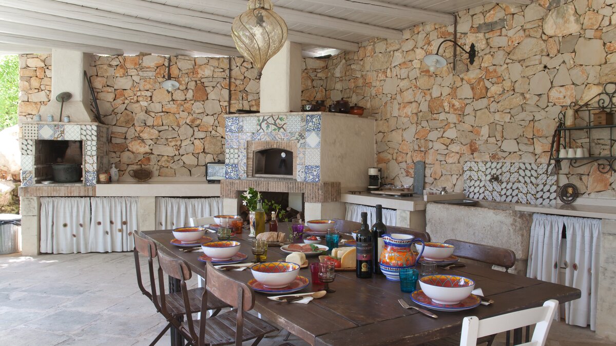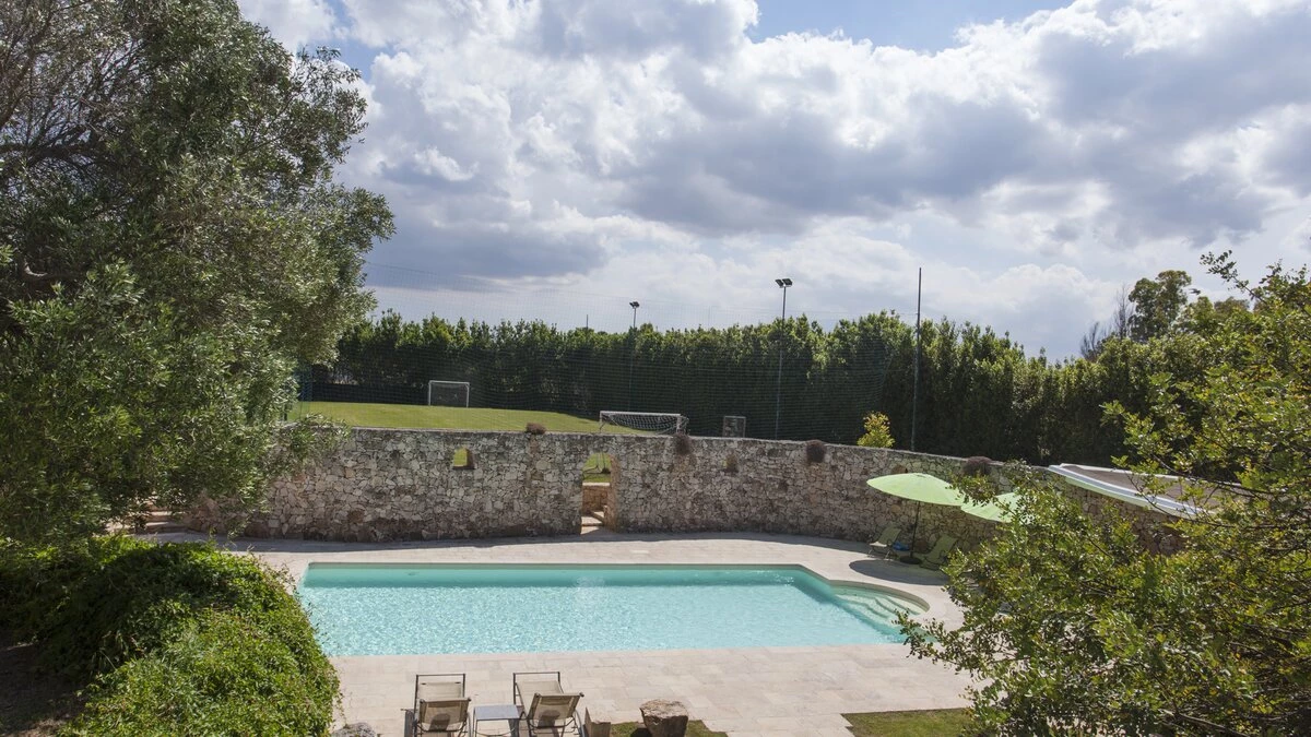 Right at the heart of Italy’s ‘boot heel’, Lecce is a beautiful baroque town, known as ‘the Florence of the South’. Set in a residential area just 2km from superb restaurants in its 17th century sandstone streets, this striking family villa stands in tiered gardens, where huge lawns are shaded with ancient olive trees; shrubs and orange trees cluster round broad terraces; music adds mood to a shaded seating area beside the private pool; and guests need not even leave the grounds for a five-a-side football match. Adding to al fresco living, a huge curved and covered terrace overlooks the poolside, complete with stylishly furnished sitting and dining areas, and a summer kitchen with fridge, barbecue and wood oven. A second outdoor dining table basks in a sunny spot beside the house, and a door leads in from here to the villa’s sleek steel kitchen, with its arty lighting and a high arched ceiling. The house has an airy sitting room and study area in white with huge picture window, a smart and modern dining room, several (satellite) TV’s, contemporary shower rooms, and four charming bedrooms, individually designed. Just a quick drive or taxi drive into Lecce, it is 15 - 25km from a choice of superb sandy beaches with beach clubs.