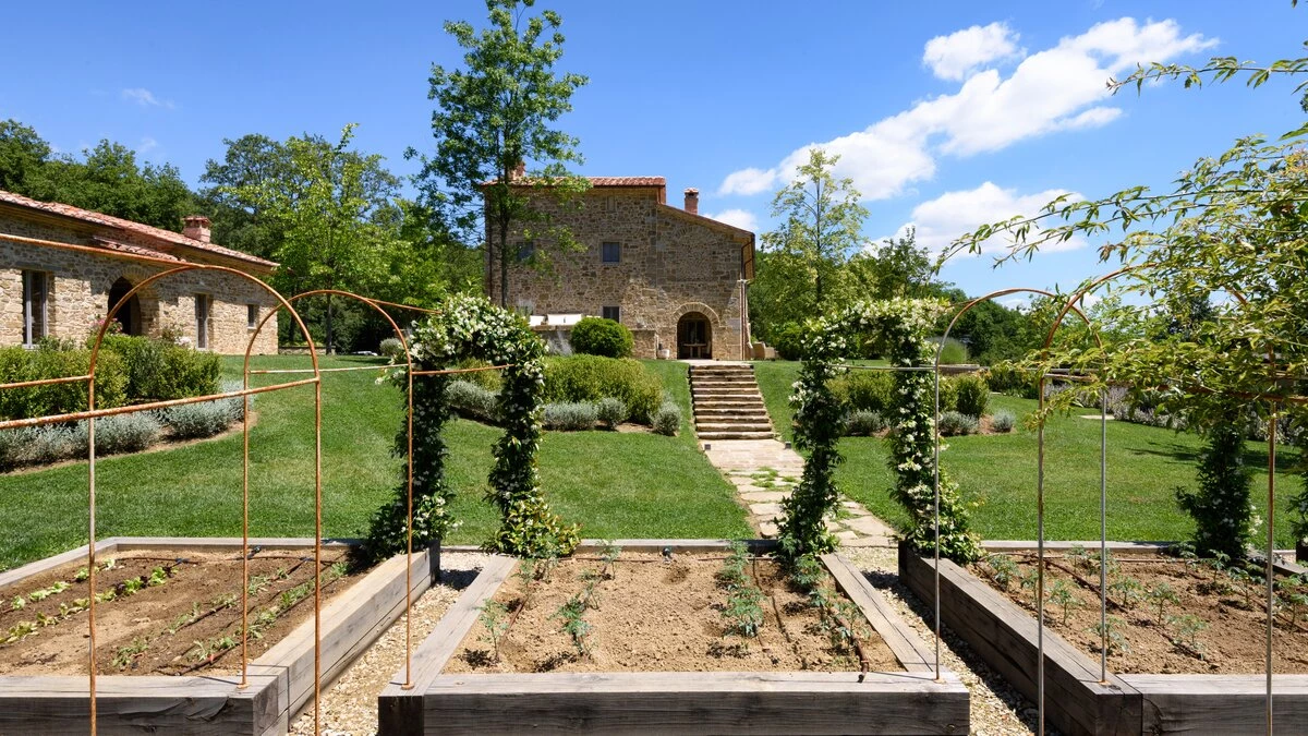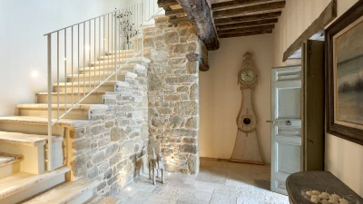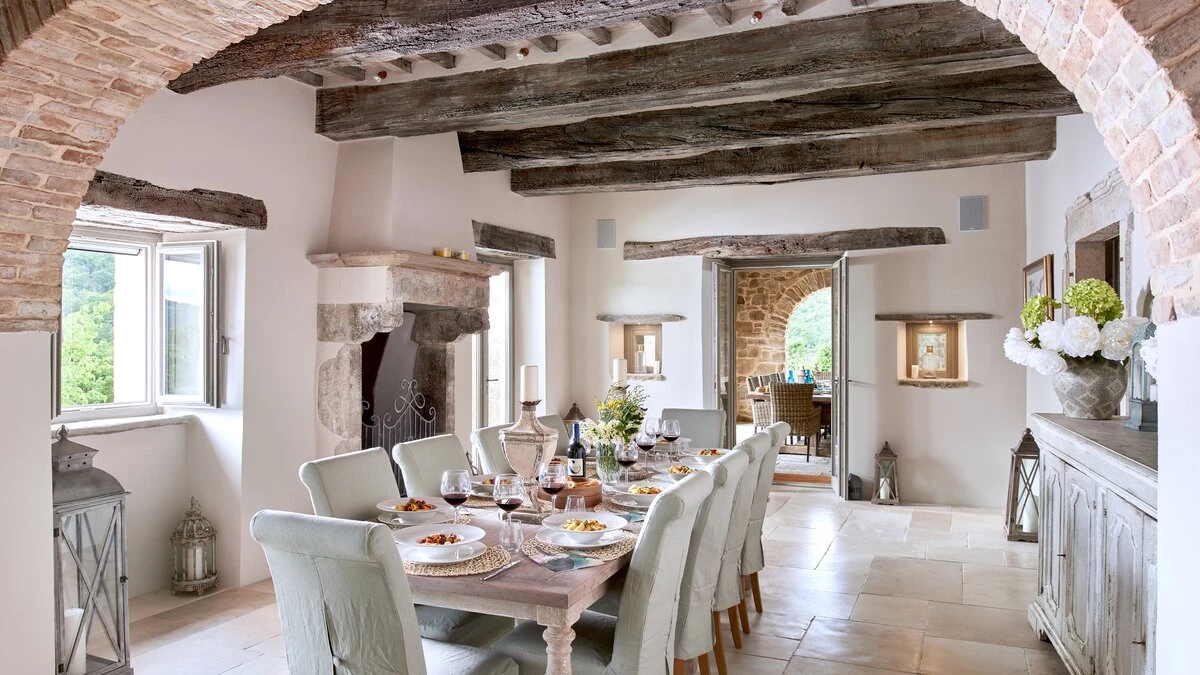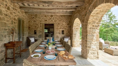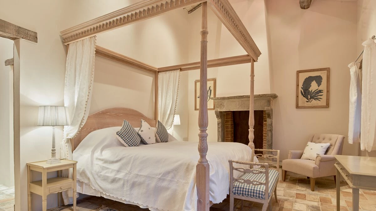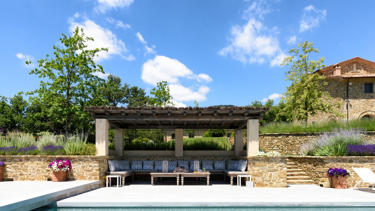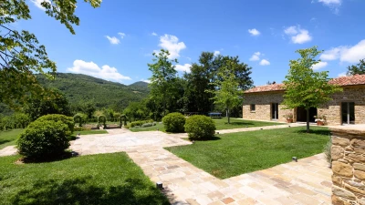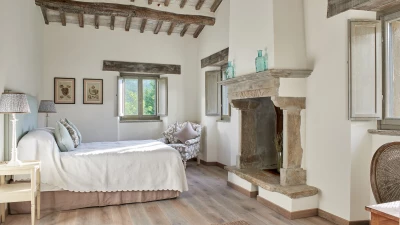 Elegantly refurbished to enhance its historic charm with contemporary luxury, this traditional stone house is set in a landscape unchanged in centuries. The extensive gardens, connected by paved paths, lead to a magnificent heated pool from which the stunning surroundings can be observed. A pool house and a covered al fresco dining area with cushioned seating and out door speakers complete the outdoor surroundings of the villa.