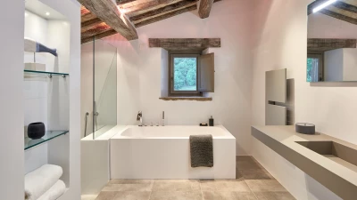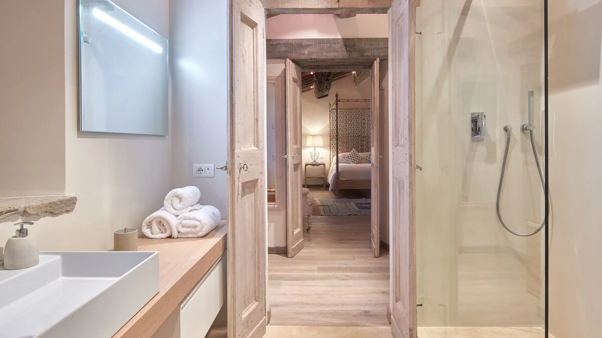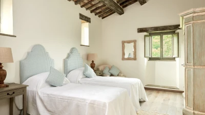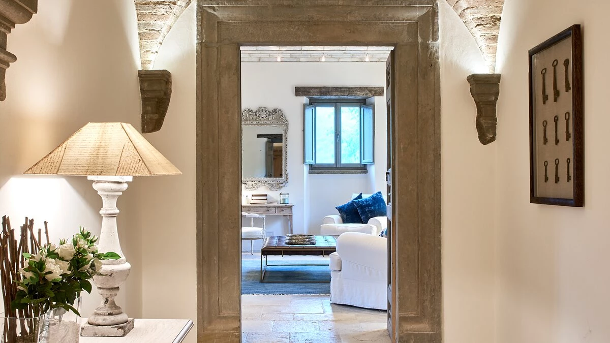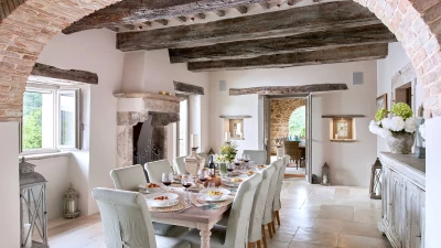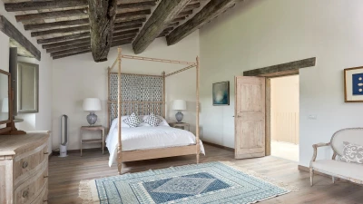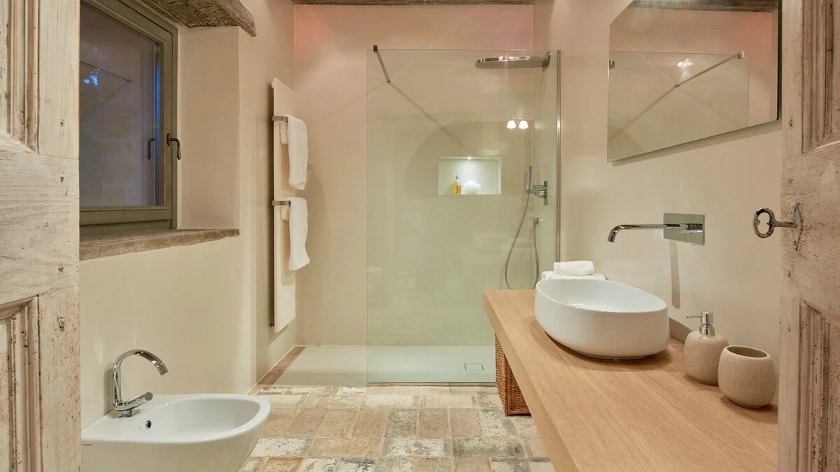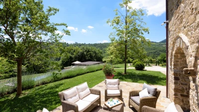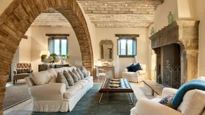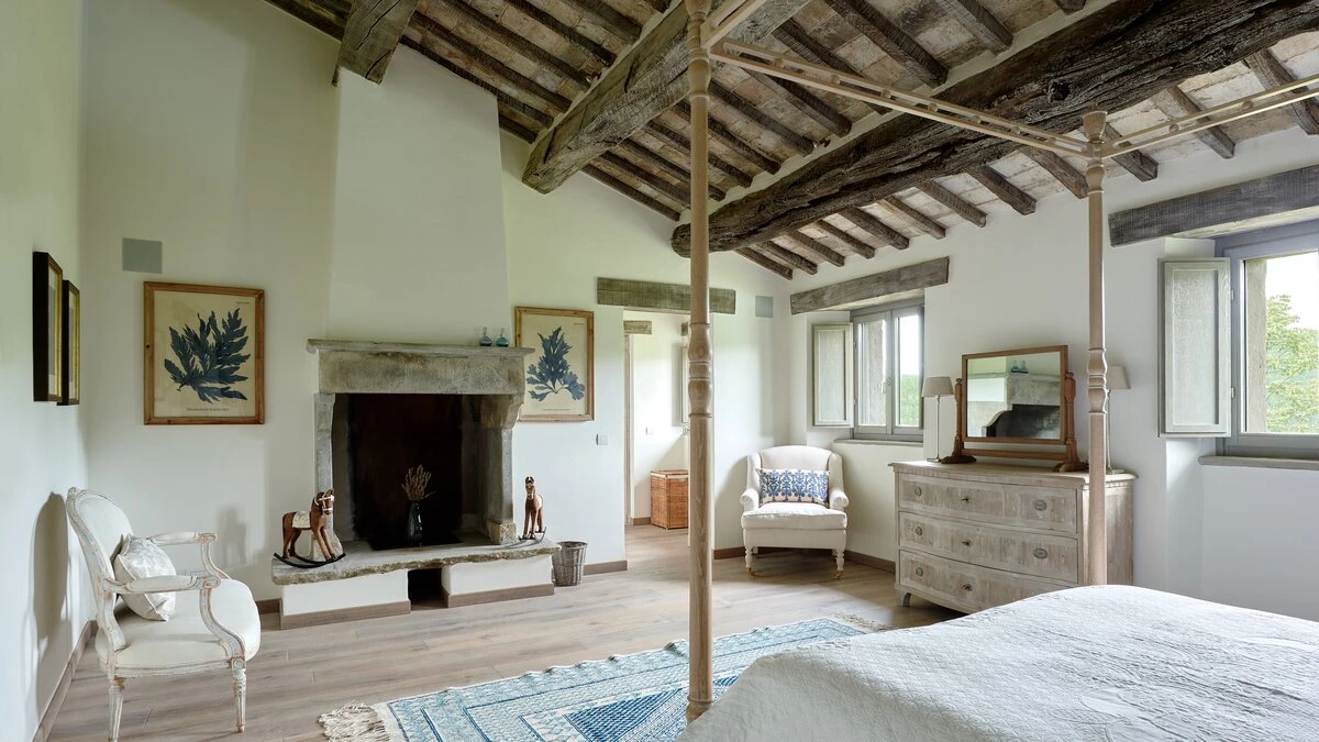 Elegantly refurbished to enhance its historic charm with contemporary luxury, this traditional stone house is set in a landscape unchanged in centuries. The extensive gardens, connected by paved paths, lead to a magnificent heated pool from which the stunning surroundings can be observed. A pool house and a covered al fresco dining area with cushioned seating and out door speakers complete the outdoor surroundings of the villa.