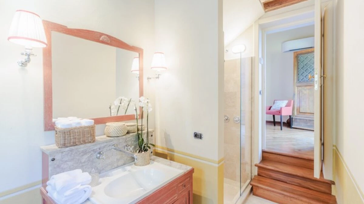 After exploring Tuscany, guests can return to relax beside the infinity pool, enjoy an aperitivo at sunset, or dine outdoors under the gazebo while taking in the beautiful views. The outdoor spaces are designed for long, leisurely days under the Tuscan sun.