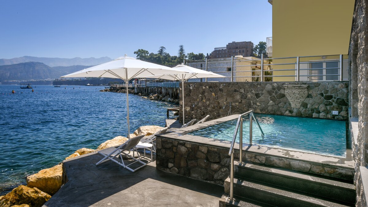 Outdoors, a private swimming pool,  Jacuzzi, shaded gazebos and parasols set the scene for relaxing days in the sunshine. Loungers invite long afternoons soaking up views across the Bay of Naples, while the outside dining area is perfect for al fresco dining with the sound of the sea as your backdrop.