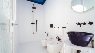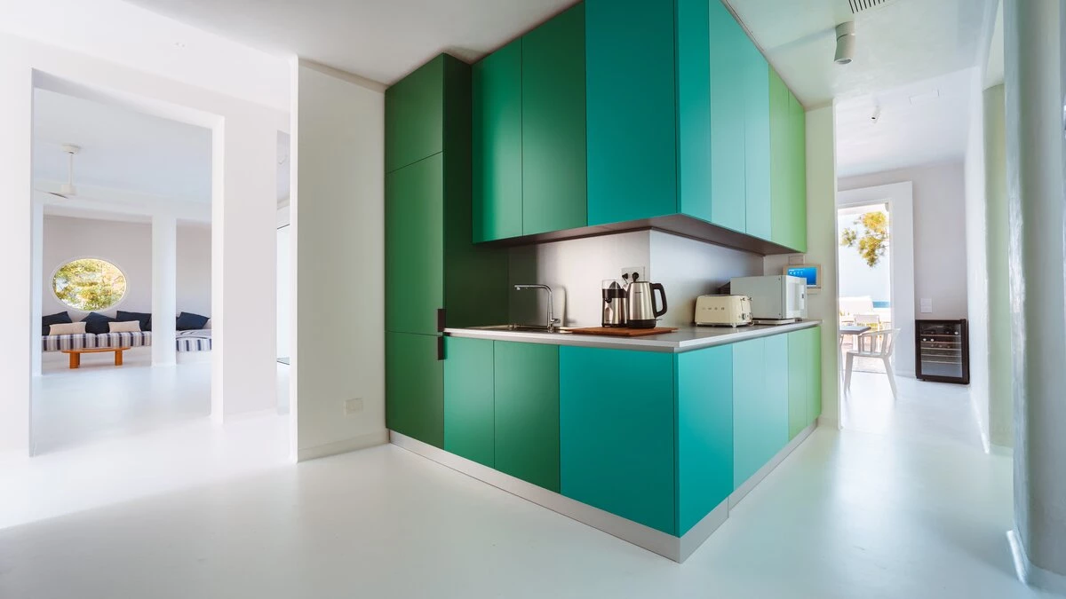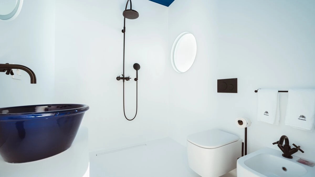 Inside, guests are immediately met with a setting of sophisticated grandeur and modernity. The light and airy open plan living room allows for natural light to truly command the space. From the kitchen to the five thoughtfully adorned bedrooms each fitted with their own en suite, every aspect of Villa Marincanto reflects an unwavering commitment to providing a unique experience for travellers seeking a relaxing coastal haven. Many of the interior colours and design elements draw directly upon the local scenery, emphasising the beauty of Puglia’s vibrant coastline.
