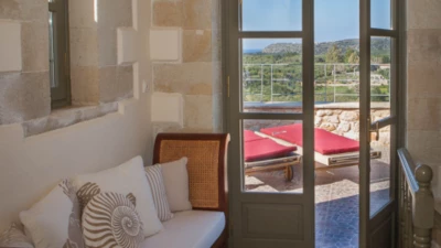 With its series of furnished terraces, stone floors and arches, timber beamed ceilings, and hand-crafted furniture, Villa Meli has all the attributes of a typical Greek retreat. But these are complemented by contemporary comforts including air conditioning, WiFi and satellite TV, Coco Mat mattresses and en suite shower rooms, and a cool pool, with an adjacent play room and kitchenette. Cook service could be added for authentic island cuisine, and Chania is within easy reach for harbour restaurants and historic sites.