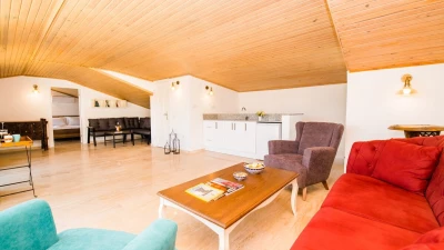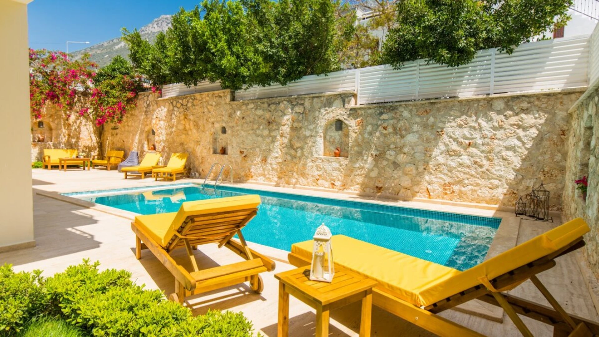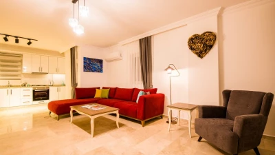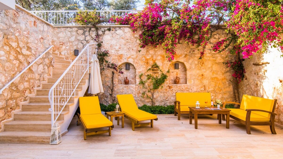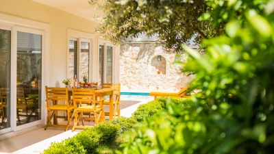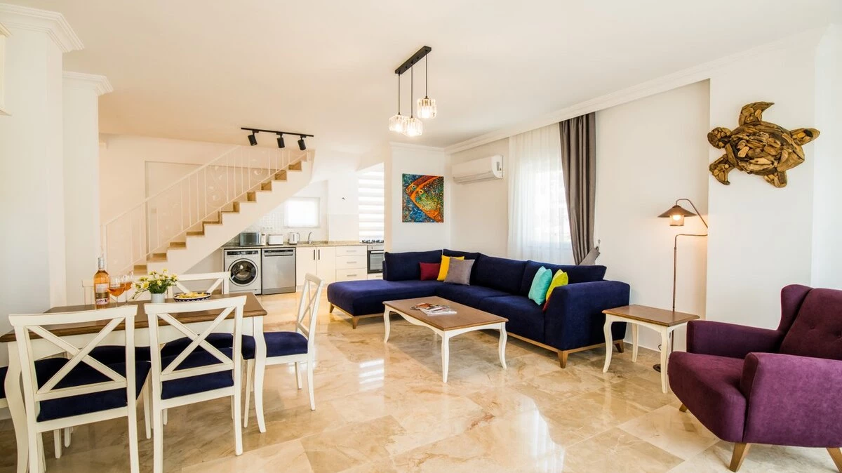 Villa Merkez is a large, spacious property ideal for large groups seeking an escape in Turkey. The villa is split across three apartments, offering the perfect combination of proximity and privacy. Each apartment is modern, bright and airy. The ground floor apartment includes a spacious living, dining and kitchen area, as well as two double bedrooms opening to either the garden or a private terrace. The second apartment is located at street level, boasting an almost identical layout, except that the two double bedrooms provide access to balconies instead. The top floor apartment features a similarly welcoming kitchen, living room and dining area. There are three en suite double bedrooms here, two opening to a balcony and the third to the sun-kissed roof terrace. This is the best spot to soak up Kalkan's sunshine and views, complete with sun loungers and a plunge pool. There is also a private pool in the garden.