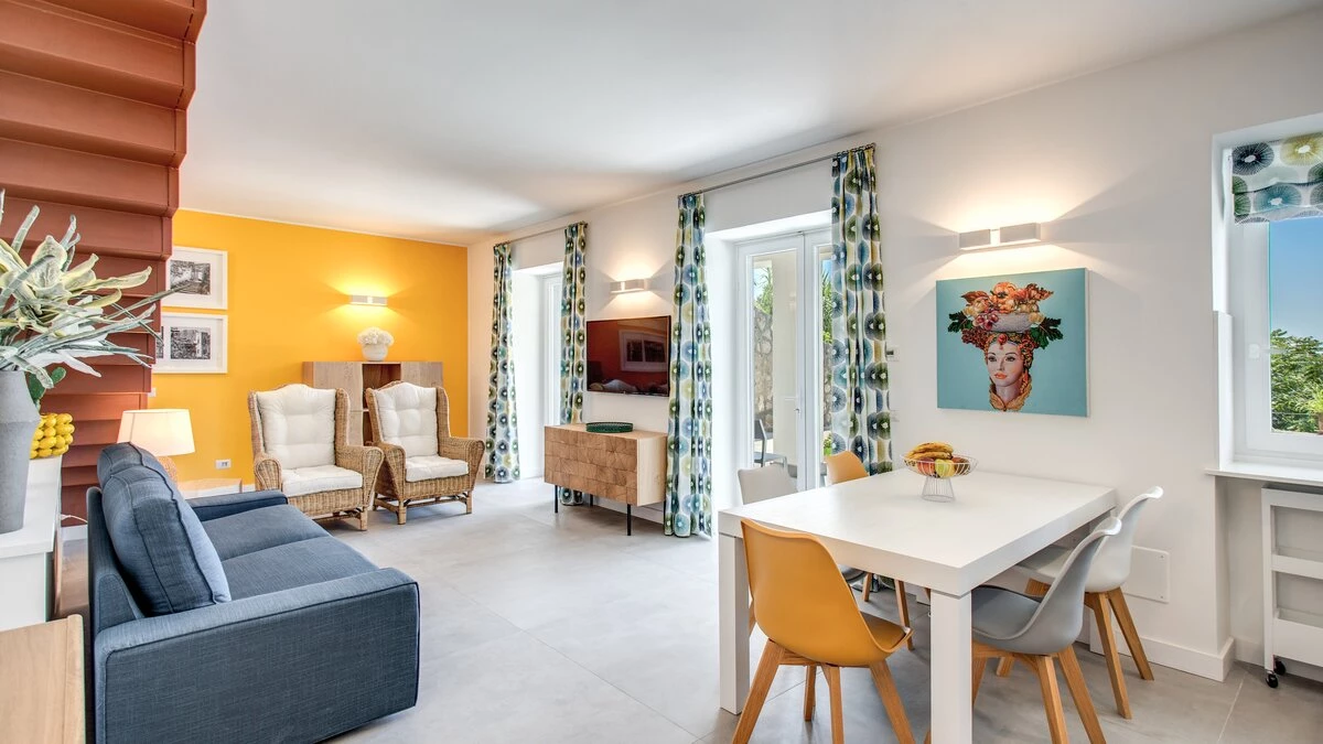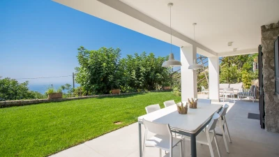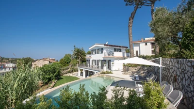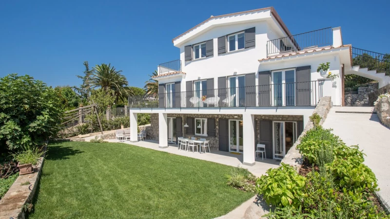 Villa Mezzaluna is an enchanting four-bedroom retreat nestled in the serene town of Sant'Agata Sui Due Golfi, offering a perfect blend of comfort and breathtaking coastal views. Ideal for families or groups of friends, this beautifully renovated villa accommodates up to eight guests and is conveniently located within walking distance of local shops and restaurants. Surrounded by lush gardens and framed by stunning terraces, Villa Mezzaluna invites you to unwind while soaking in the picturesque scenery of the Sorrento Peninsula.