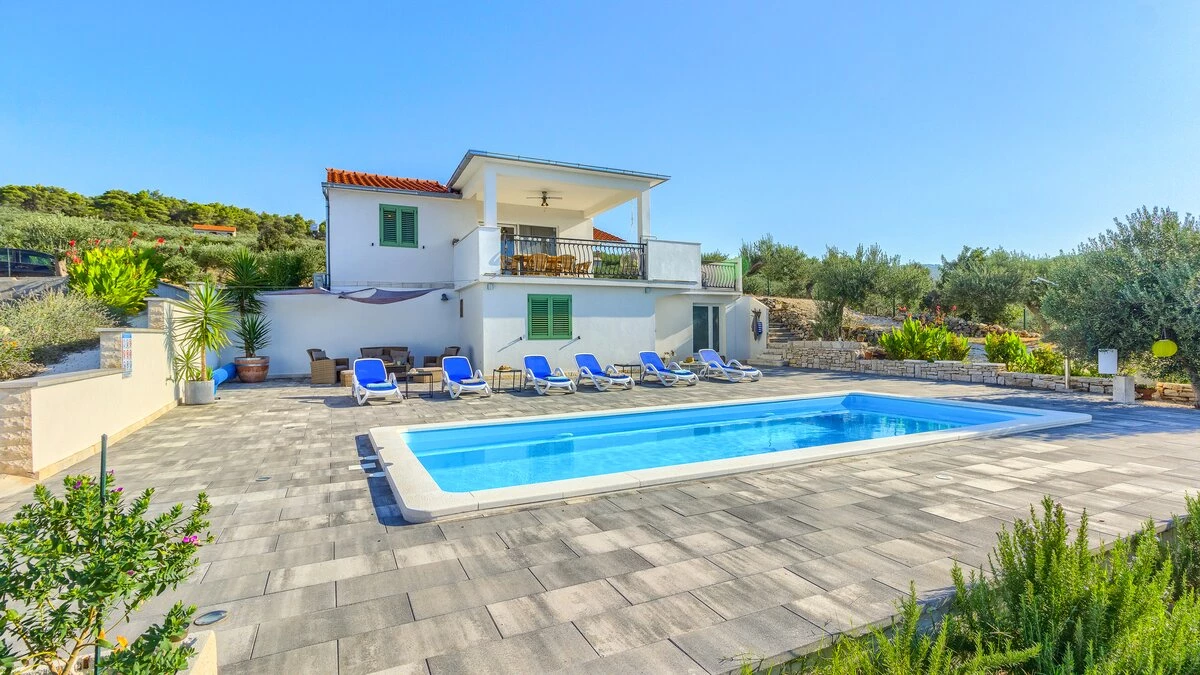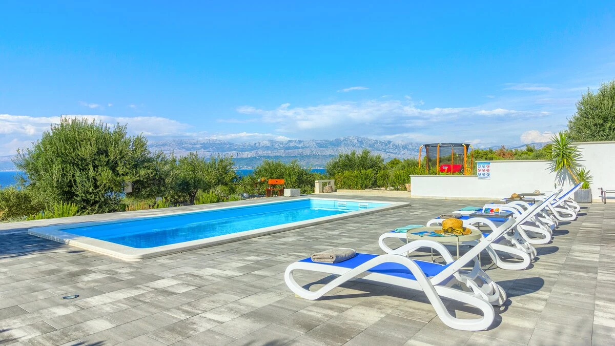 There's no better place to relax than at this secluded and spacious villa on Brac island. The property is large and welcoming, with three comfortable bedrooms, two sleek bathrooms, a fully-equipped modern kitchen, and an open-plan dining room with a fireplace. Outside, guests will find themselves immersed in nature, tranquility and the superb sea views. With complete privacy, you and your party can enjoy plenty of clean sea air and fall asleep to the song of the sea and crickets each night. A charcoal barbecue can be found on the large terrace, paired with an al fresco dining area and cosy outdoor lounge. The terraces envelopes a stunning heated pool with an outdoor shower, and a great play area for the little ones.
