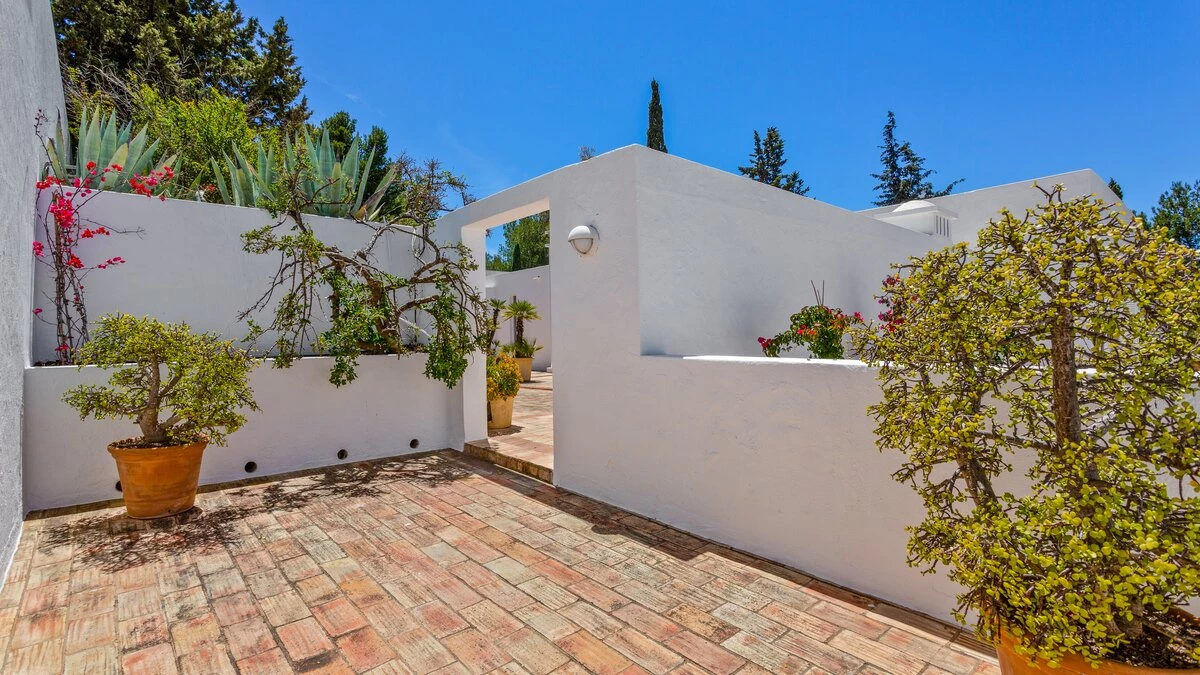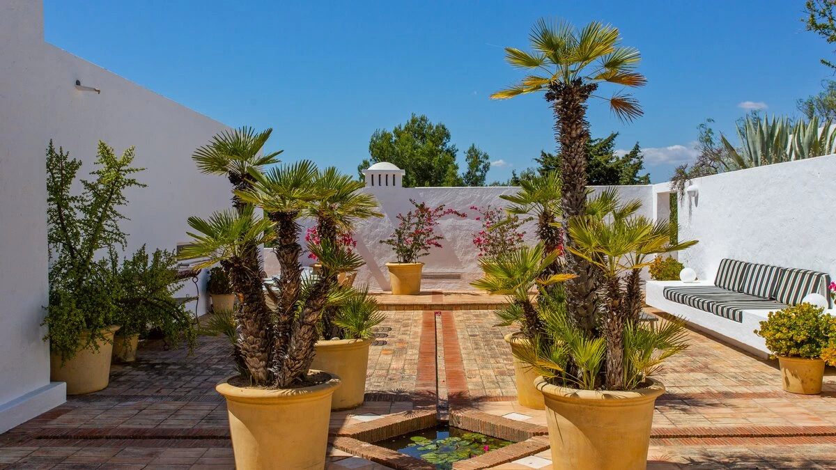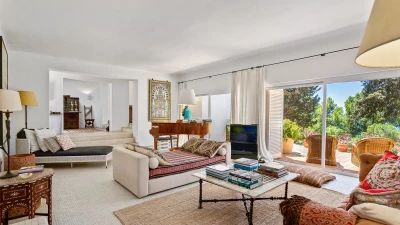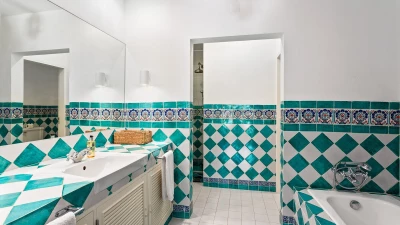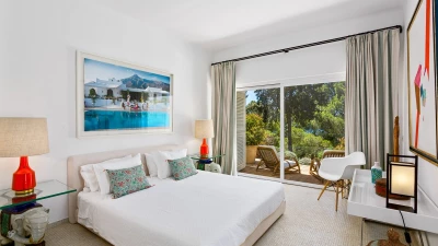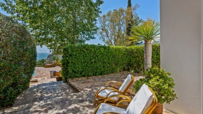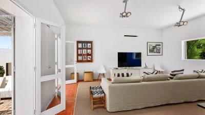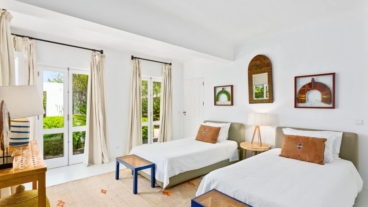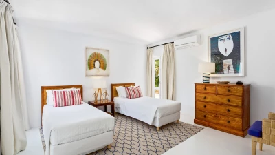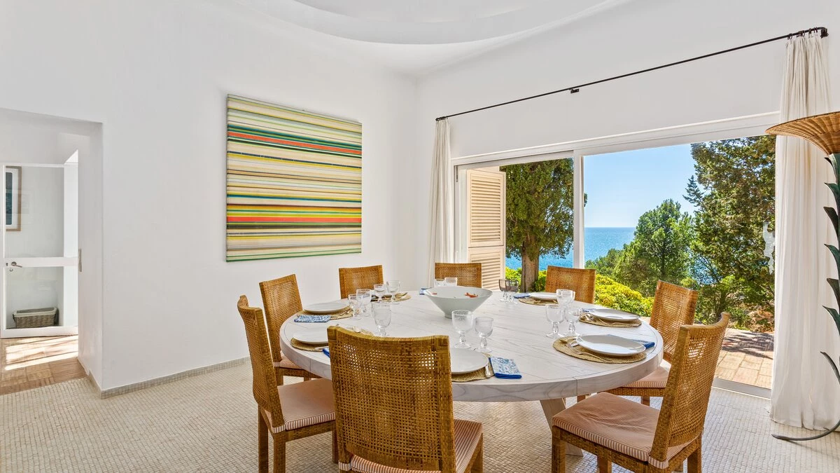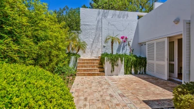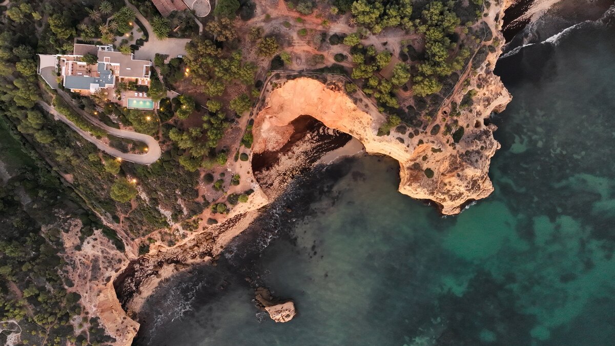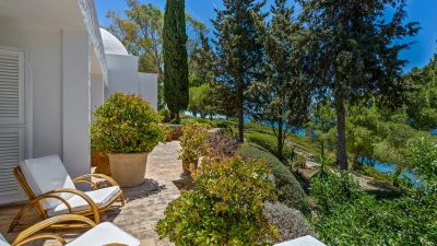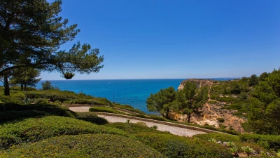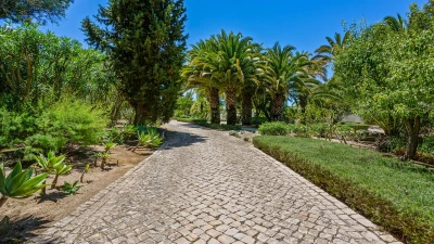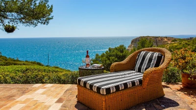 Set on a coastal cliff-top, a walkable 1km from Carvoeiro, Villa Mourisco nestles in four private hectares of gated and landscaped grounds, replete with palms and pines, olive and fig trees, and shaded patios placed for stunning sea and sunset views. An entry courtyard to the villa is a preview of its easy tempo and arty style, with a water feature, citrus trees in huge pots, deep cushions on built-in seating, and a table for breakfast al fresco. Within the house, innovative design blends with colonial country house furnishings; the sitting room is elegant yet informal, with intriguing artworks, a baby grand, and sliding glass doors to a garden terrace; cook service complements a fully equipped galley kitchen; and the two double and two twin bedrooms each have en suite bath or shower room.  Privately positioned at the poolside, the master suite is a romantic domed building, air-conditioned and complete with bedroom, sitting area and in-room bath. And, along with the heatable swimming pool, the grounds encompass a tennis court and table tennis, and a path to a little gate and long flight of steps leading directly to the sands of Praia de Paraiso.