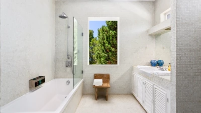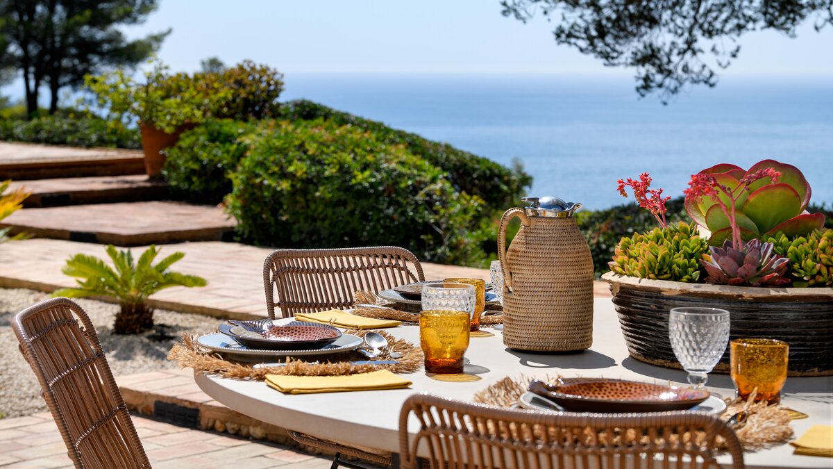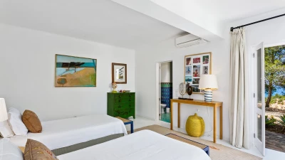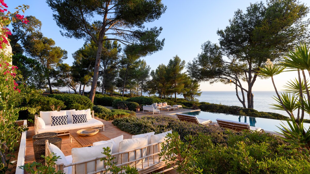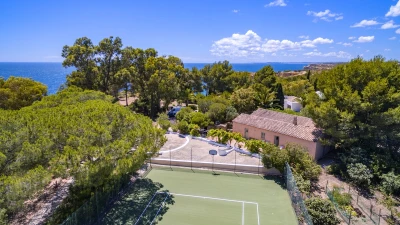 In a prime position overlooking the ocean, this exceptional luxury villa offers tranquil gardens, a private tennis court, inclusive cook service, and a path through its own grounds to the beach.