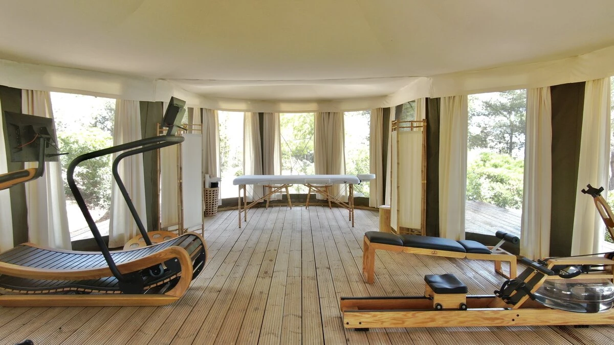 • External gym with running machine, exercise bike, weights and treatment room
