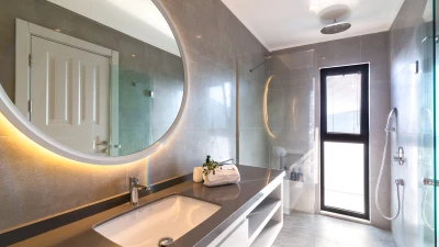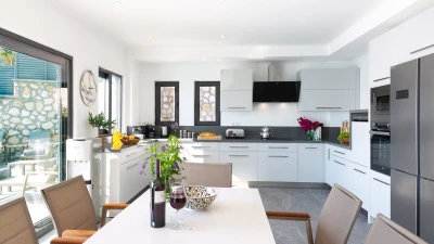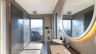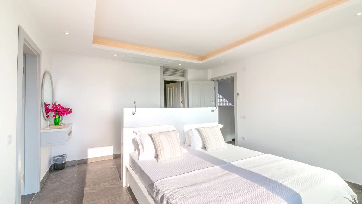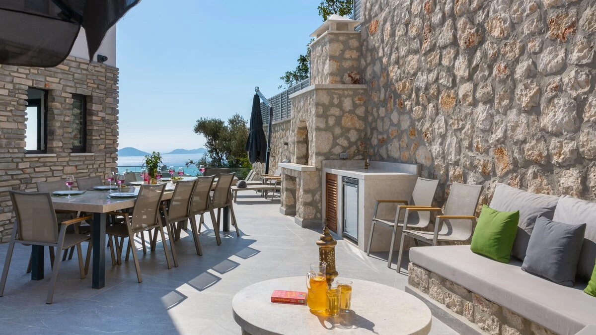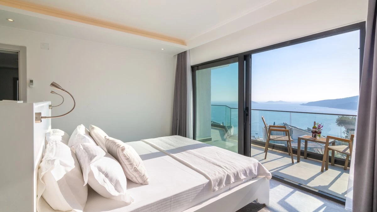 A contemporary and spacious hillside villa with an infinity pool, al fresco dining area and stunning views across Kalamar bay.