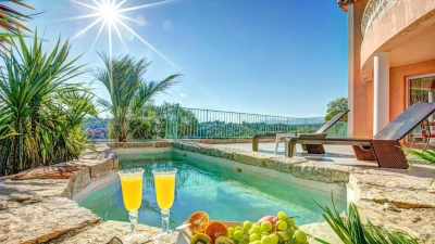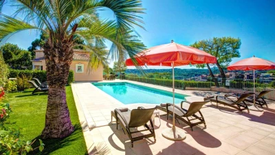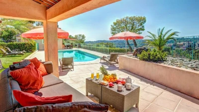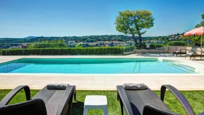 Perched above the charming medieval village of Biot, Villa Panorama is a contemporary four-bedroom retreat offering sweeping views of the surrounding hills and the sparkling Mediterranean. Designed with light, airy interiors and elegant modern furnishings, the villa is a serene haven for up to eight guests seeking style and tranquillity on the Côte d’Azur.