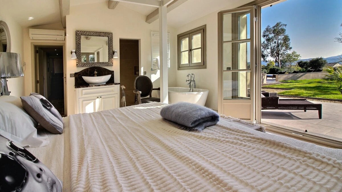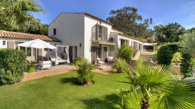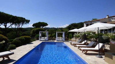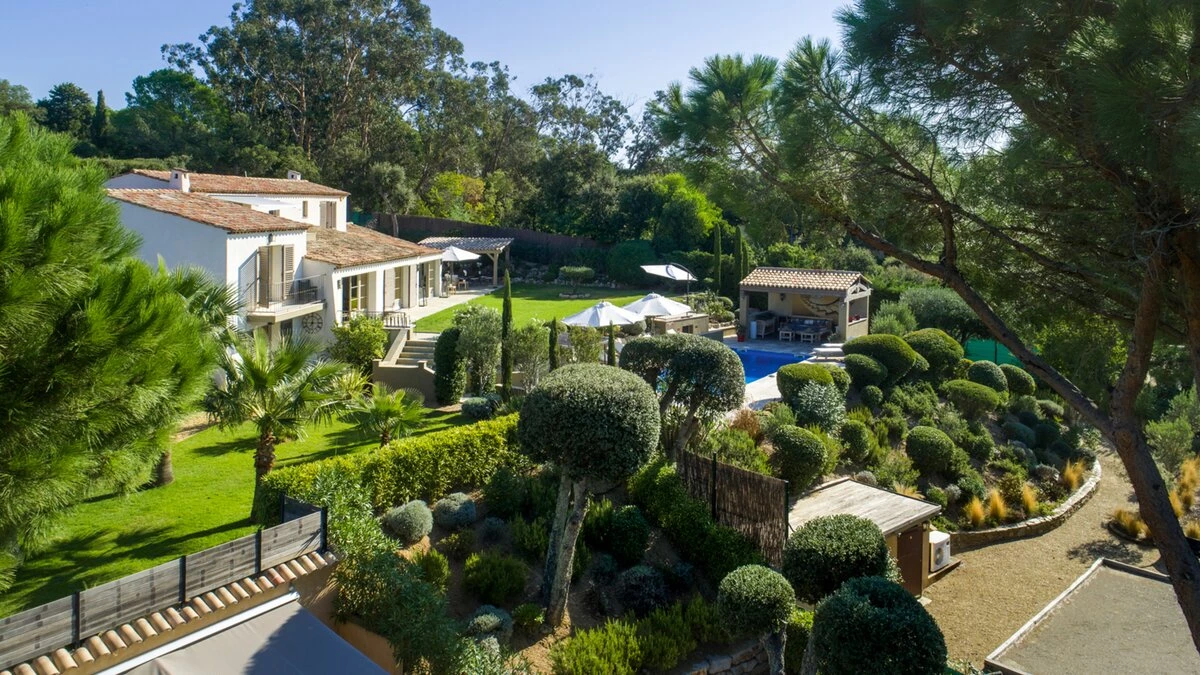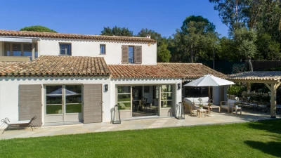 Set within beautifully landscaped Mediterranean gardens, Villa Paradis is a serene Côte d’Azur retreat where sea views, space and privacy come together effortlessly. Olive trees, flowering beds and flat lawns frame the villa, creating a peaceful setting just a short stroll from a sandy beach and nearby restaurant, with St Tropez only a short drive away.