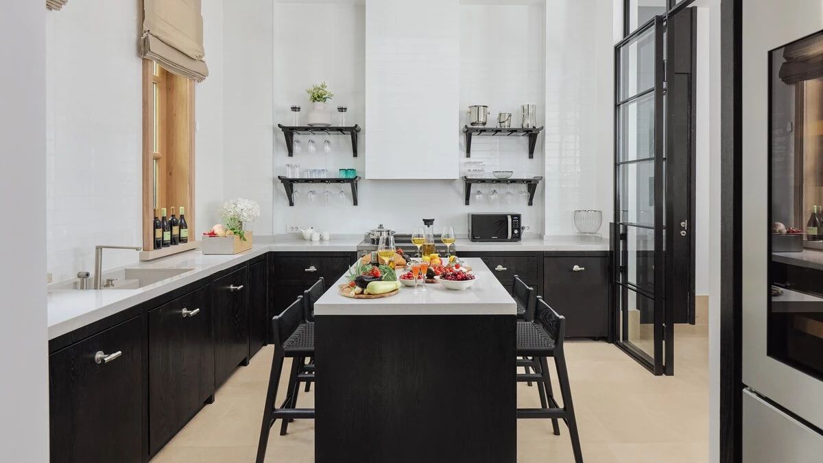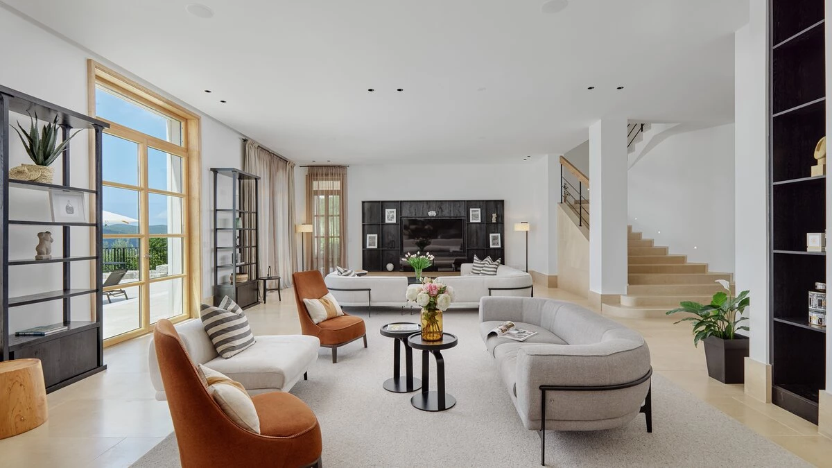 Inside, the villa is designed with effortless style and space in mind. The heart of the home is a sleek open-plan kitchen and dining area, perfect for leisurely breakfasts or evening gatherings. The light-filled living room flows out onto a spacious terrace, ideal for soaking up the sunshine or enjoying an alfresco dinner with friends.