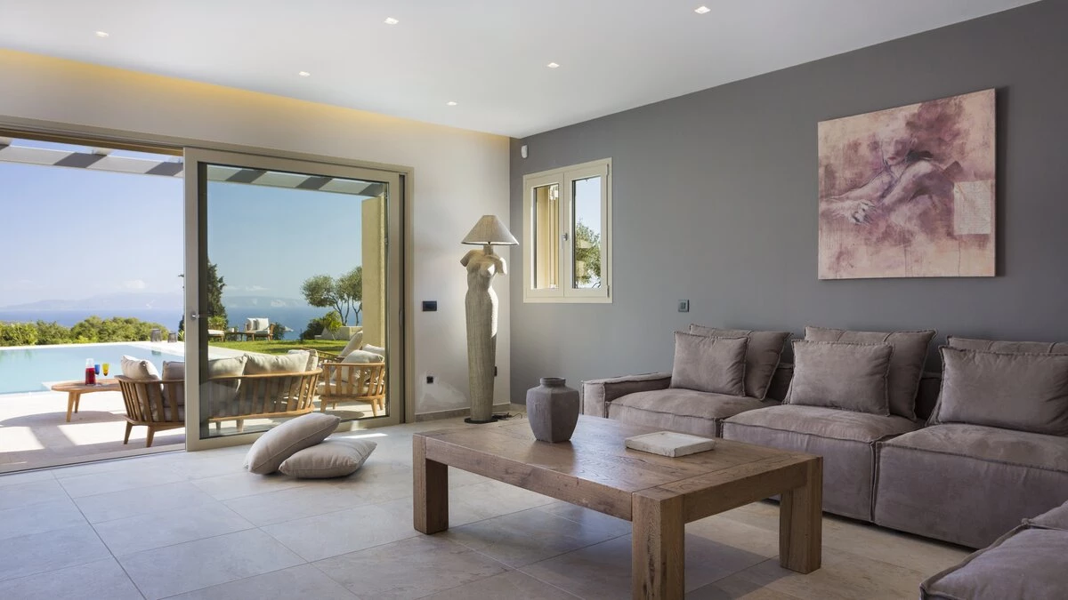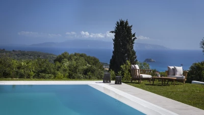 With high quality interiors and furnishings to match, Philoxenia is smart and modern property in an idyllic location. The main villa is spread across three floors, where the ground floor is home to a fully-equipped contemporary kitchen, a spacious living room and the first en suite double bedroom. Step outside to discover the ‘pièce de résistance’: an incredible pool, along with a spacious terrace and amazing accompanying views of the Ionian Sea. On the first floor are a further two bedrooms, a double and twin, which are both en suite and open to a terrace for more remarkable views. The lower ground floor is occupied solely by a gym, while an annexe building houses the final en suite double bedroom, with a second kitchen and living room.