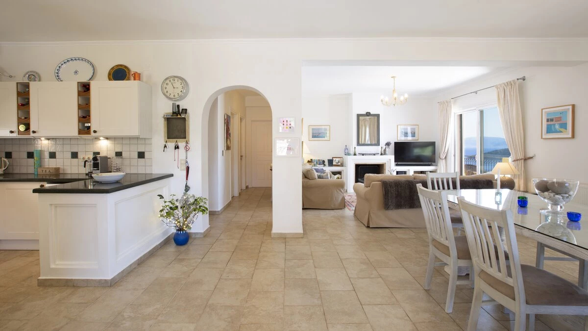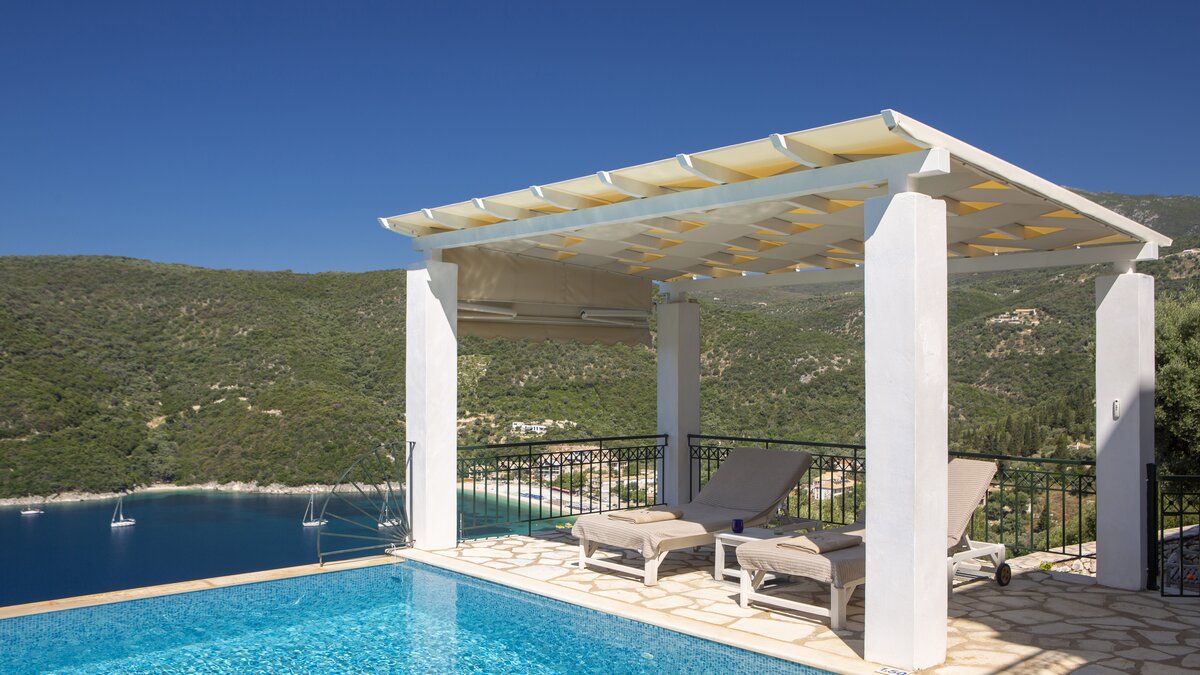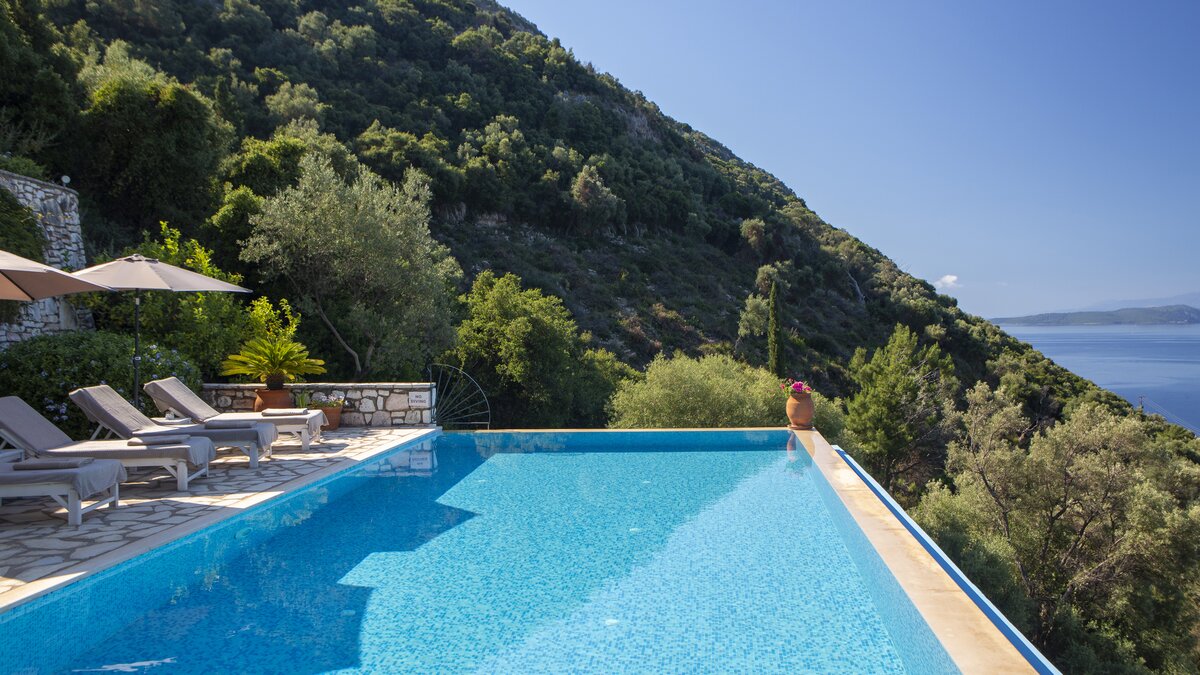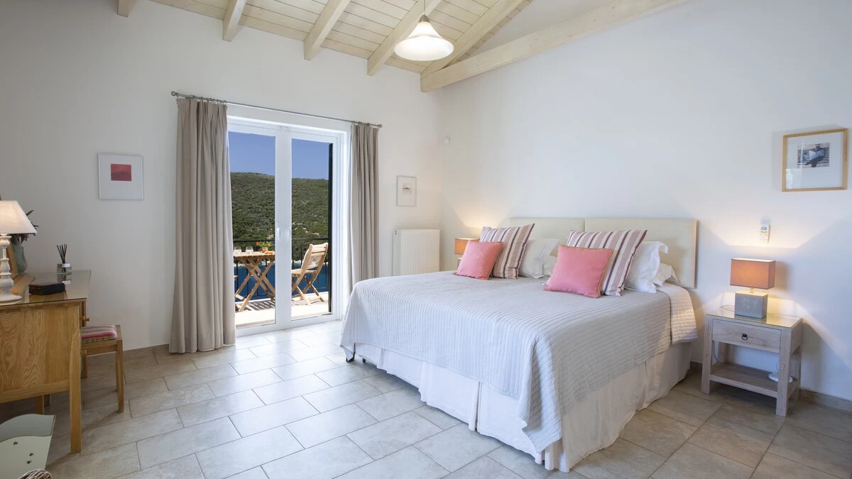 Outside, Villa Pikermi boasts wide terraces, offering total privacy and multiple spots to relax, whether you’re more accustomed to sunny or shady spots. The swimming pool is perfect for cooling off in the heat while admiring gracious sea views. The villa’s covered terrace offers al fresco dining options for hearty home cooked meals, or for those wanting to explore, the charming hamlet of Mikros Gialos is just a 20-minute walk away, offering two good tavernas and a small minimarket. The livelier ports of Sivota and Nidri are within a 20-25 minute drive, providing additional dining and shopping options. With the beautiful Mikros Gialos beach also very nearby, boats, paddleboards, and kayaks are all available for hire.