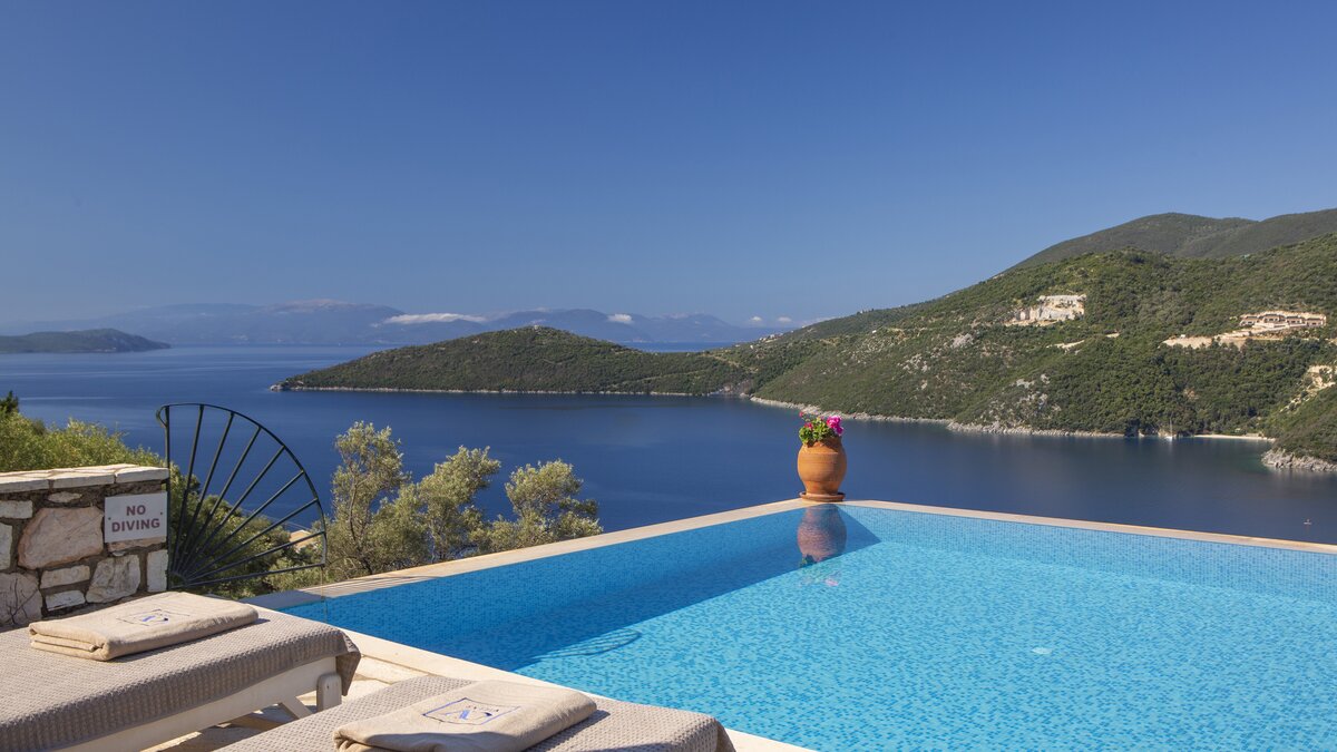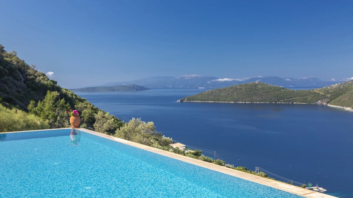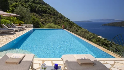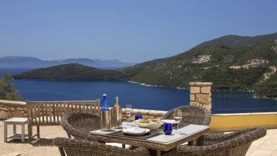 A wonderfully comfortable luxury villa in Lefkada, with magnificent sea views from its secluded seaf... -