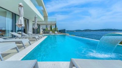 Perfectly poised in a bay near Rogoznica, this contemporary family villa offers a super luxurious st... -