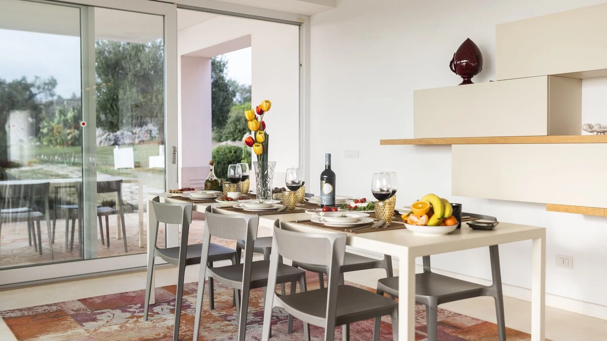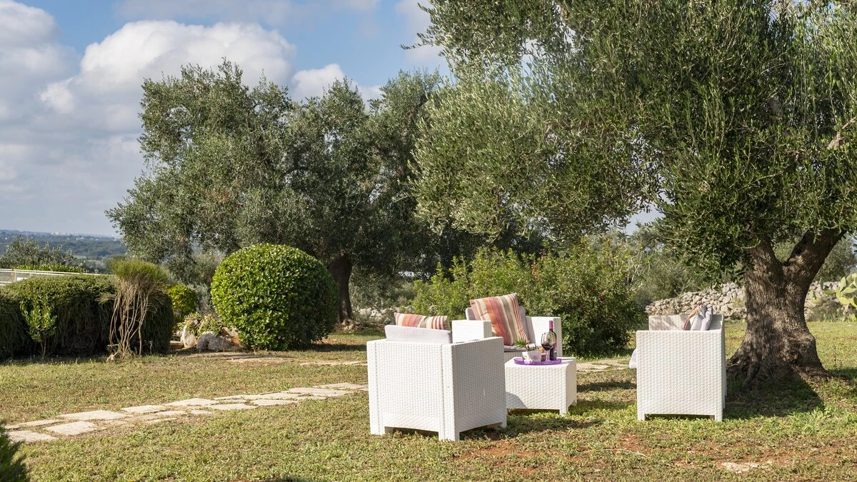 Villa Punto is a modern, fully equipped villa with large and expansive windows. The villa is perched atop a beautiful Italian hill in an ancient olive grove, with panoramic views overlooking the Valle d’Itra countryside with Ostuni, Martina Franca, Cisternino and Ceglie Messapica within easy driving distance. The magical gardens that Villa Punto sits in spans five acres and is home to more than 120 rich centennial olive trees which produce high quality Italian extra virgin olive oil that is available for guests to use.