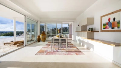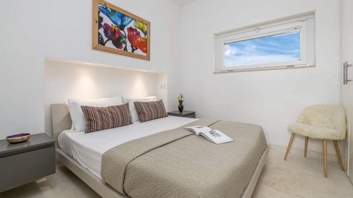 This contemporary, artfully designed villa has three large en suite bedrooms, two of which contain double beds and one having a snug set of twins. The master bedroom also contains its own personal walk-in wardrobe. The villa has air conditioning in all three bedrooms for those travelling in summer, and underfloor warm heating panels for those looking for a holiday in colder months. Inside is a large, open-plan lounge, kitchen and dining area, creating a spacious atmosphere, with wide sliding window doors perfectly interconnecting the inside and outside, giving the villa a more natural feel.